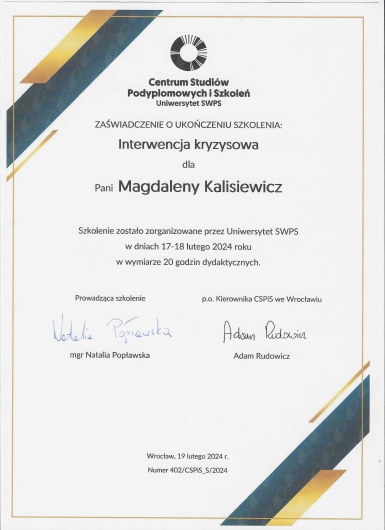 Pani Magdalena doskonale mnie zrozumiała i stworzyła przyjazną, otwartą atmosferę. Dzięki wspólnej pracy uświadomiłam sobie źródła swoich problemów i mogłam podjąć skuteczną z nimi walkę. Polecam konsultację.
