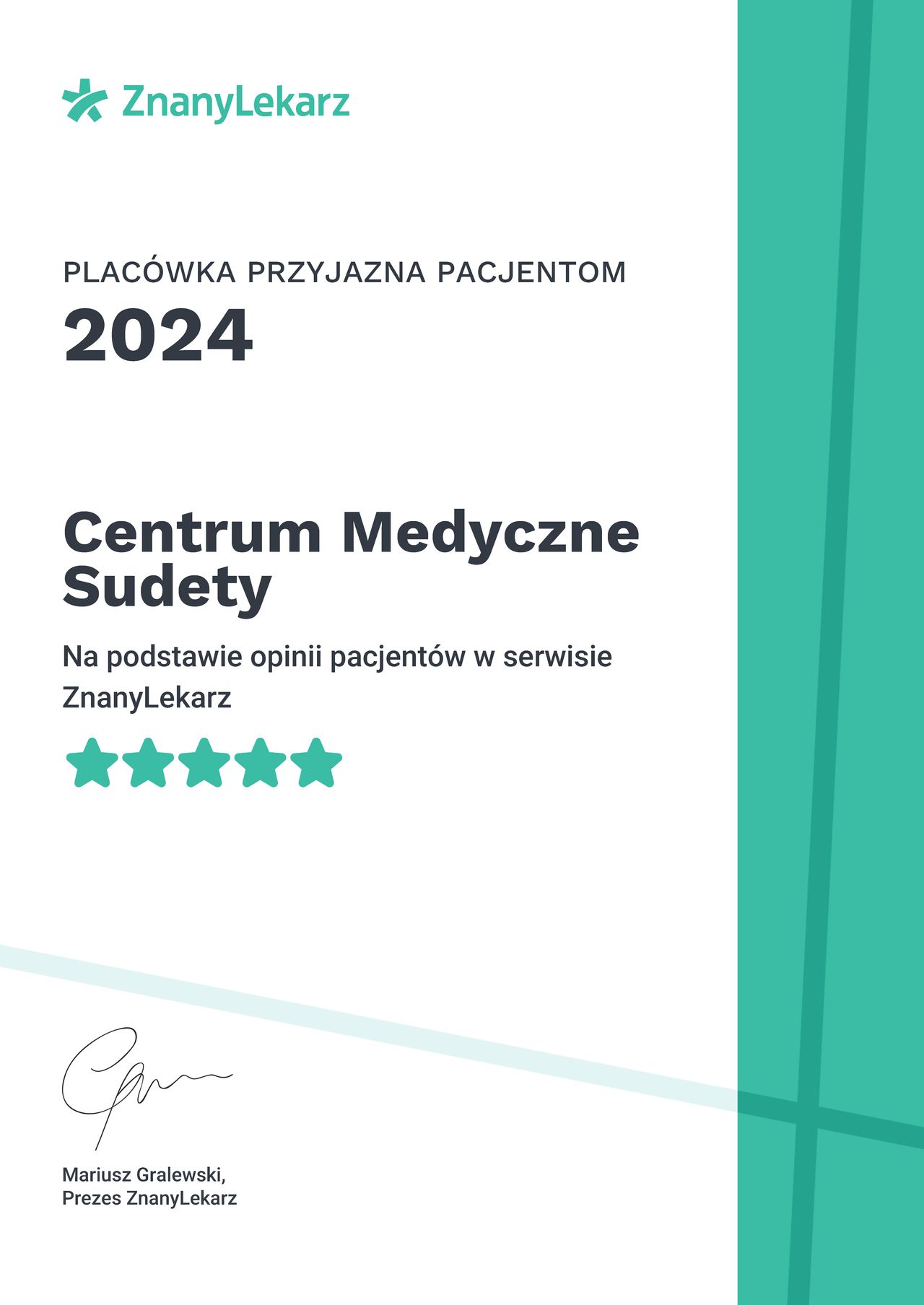 Administratorem danych osobowych jest ZnanyLekarz sp. z o.o. z siedzibą w Warszawie przy ul. Kolejowej 5/7. Informujemy, że po przekazaniu przez nas Twoich danych osobowych wybranemu przez Ciebie Profesjonaliście, staje się on również administratorem Twoich danych osobowych i przetwarza je w celach związanych ze świadczeniem usług medycznych lub innych podobnych.