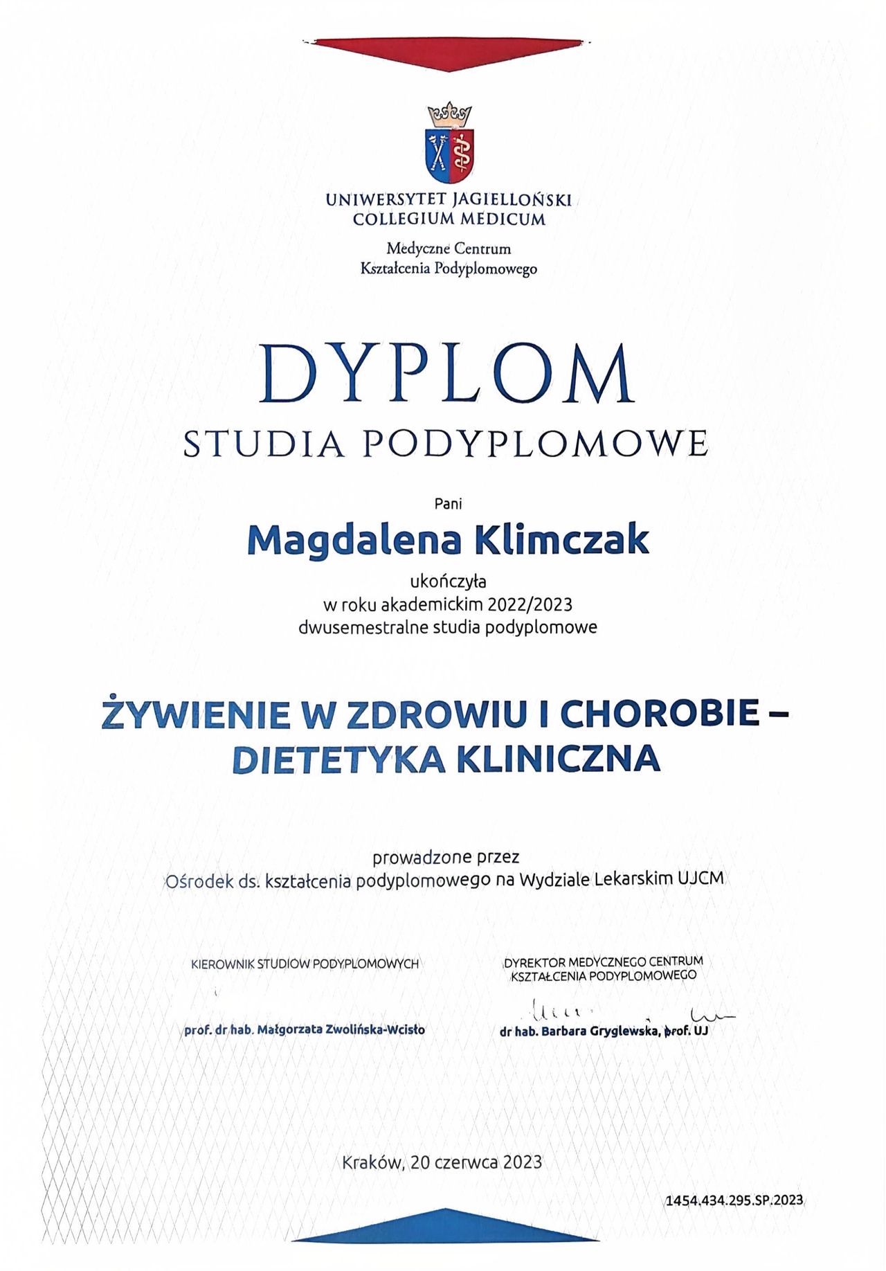 Moje zainteresowania zawodowe koncentrują się na wpływie diety i stylu życia na zdrowie człowieka. Szczególną uwagę poświęcam roli mikrobioty jelitowej, jej znaczeniu dla funkcjonowania organizmu oraz możliwościom wspierania leczenia poprzez modyfikację nawyków żywieniowych. Wierzę, że zdrowie w dużej mierze zależy od codziennych wyborów, tego jak żyjemy, jak się odżywiamy i jak dbamy o swój organizm.