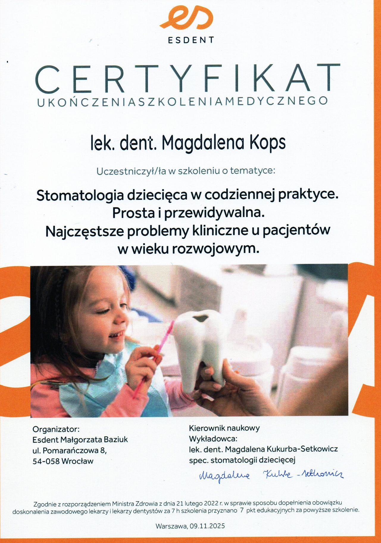 • UKOŃCZONE SZKOLENIE Z KOMPUTEROWEGO ZNIECZULENIA W STOMATOLOGII