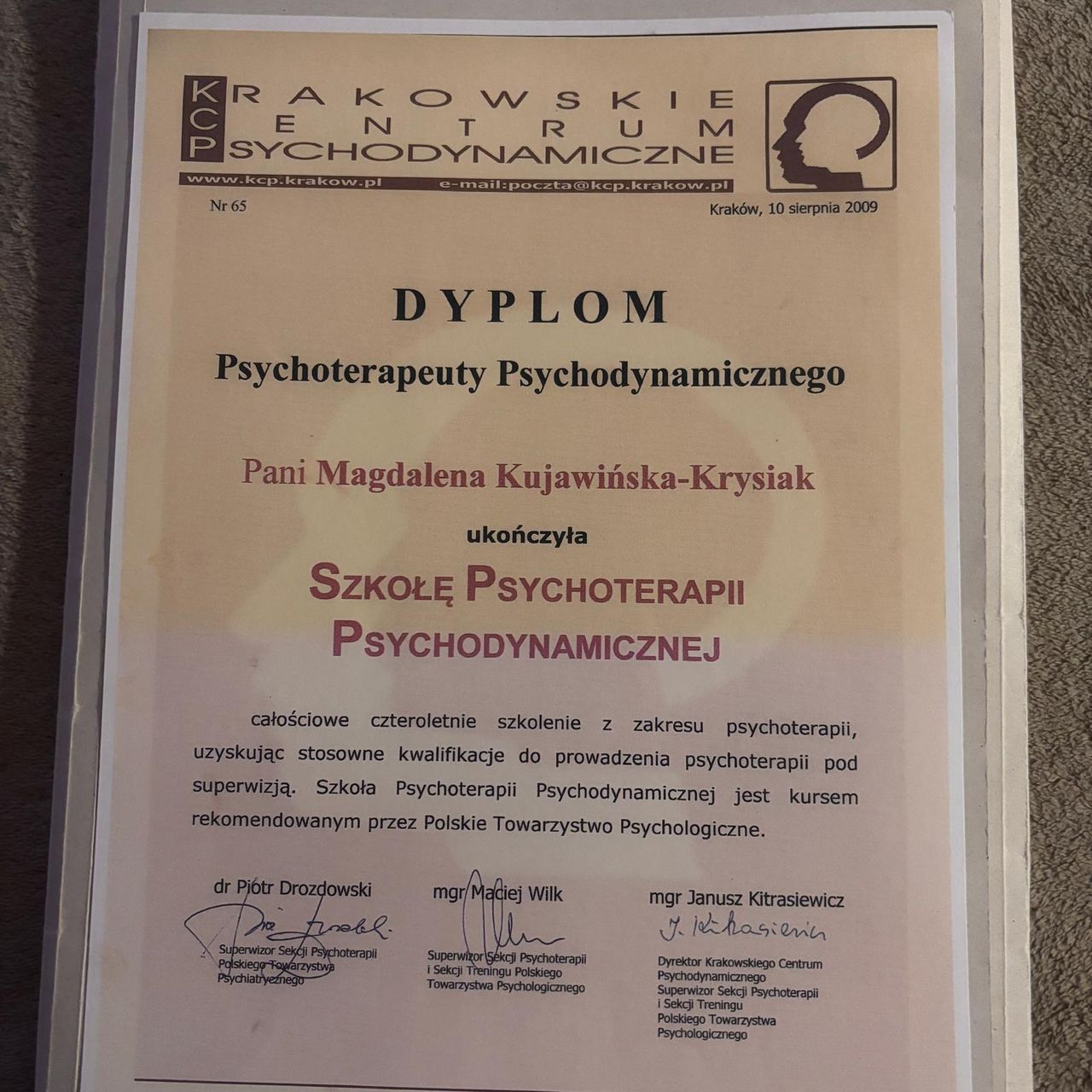 Jestem specjalistą psychologii klinicznej oraz psychoterapeutą psychodynamicznym z ponad 20-letnim doświadczeniem zawodowym. Pracuję od 2002 roku w placówkach NFZ, takich jak Poradnia Zdrowia Psychicznego, Oddział Dzienny Leczenia Zaburzeń Nerwicowych oraz Oddział Dzienny Psychiatryczny, a także prowadzę prywatny gabinet.
