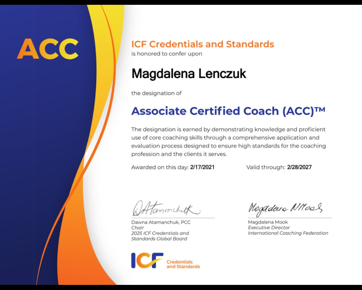 Psycholożka, Coach ACC ICF, Trenerka kompetencji społeczno-emocjonalnych.
