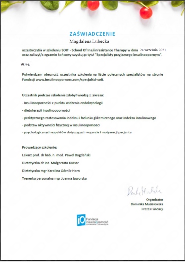 - SOIT (School of insulinresistance therapy) - Specjalista przyjazny insulinoopornym,
