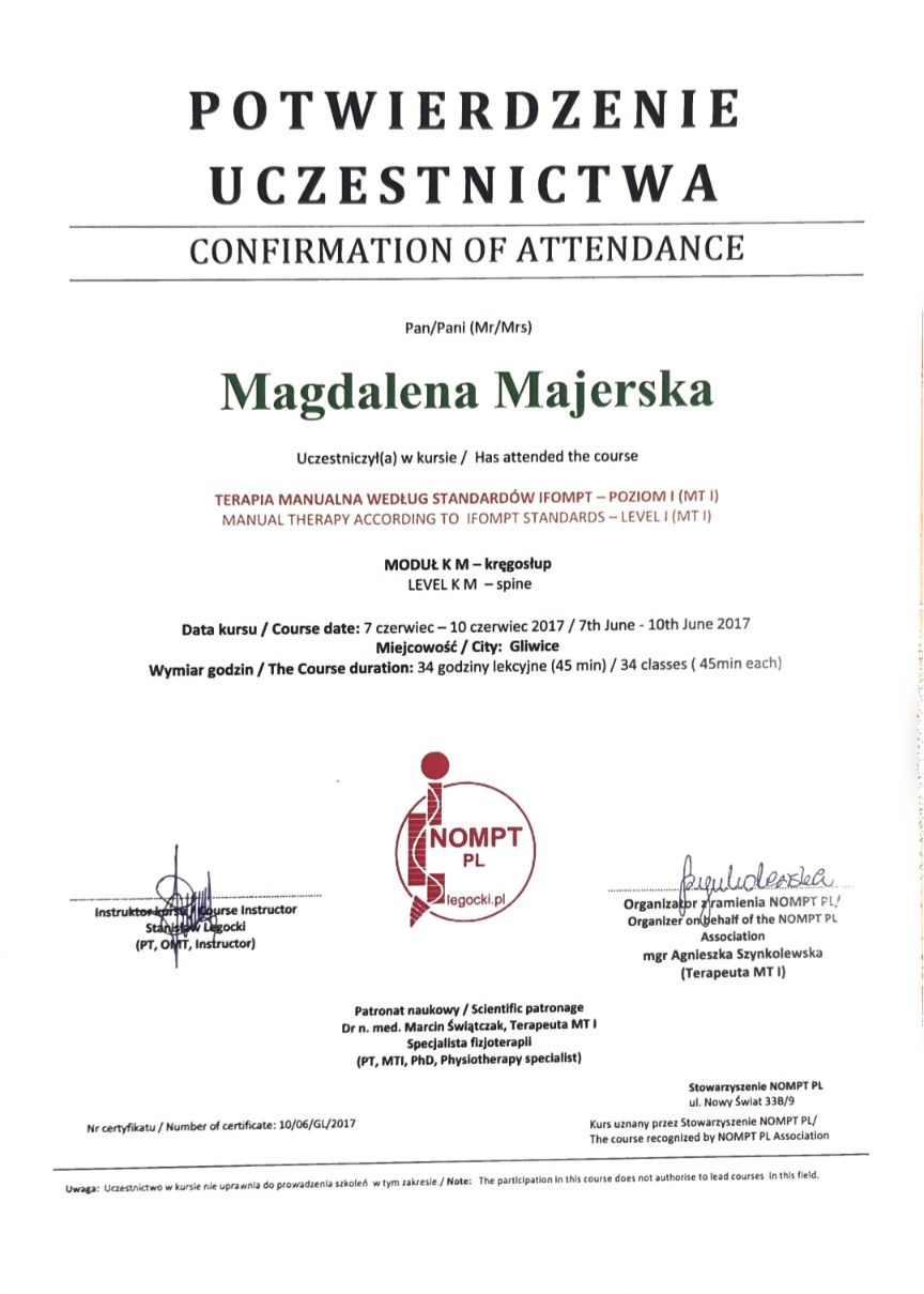 Serdecznie polecam. Pani Magdalena zrobiła ze mną szczegółowy wywiad i dopasowała terapię.
