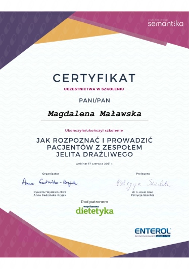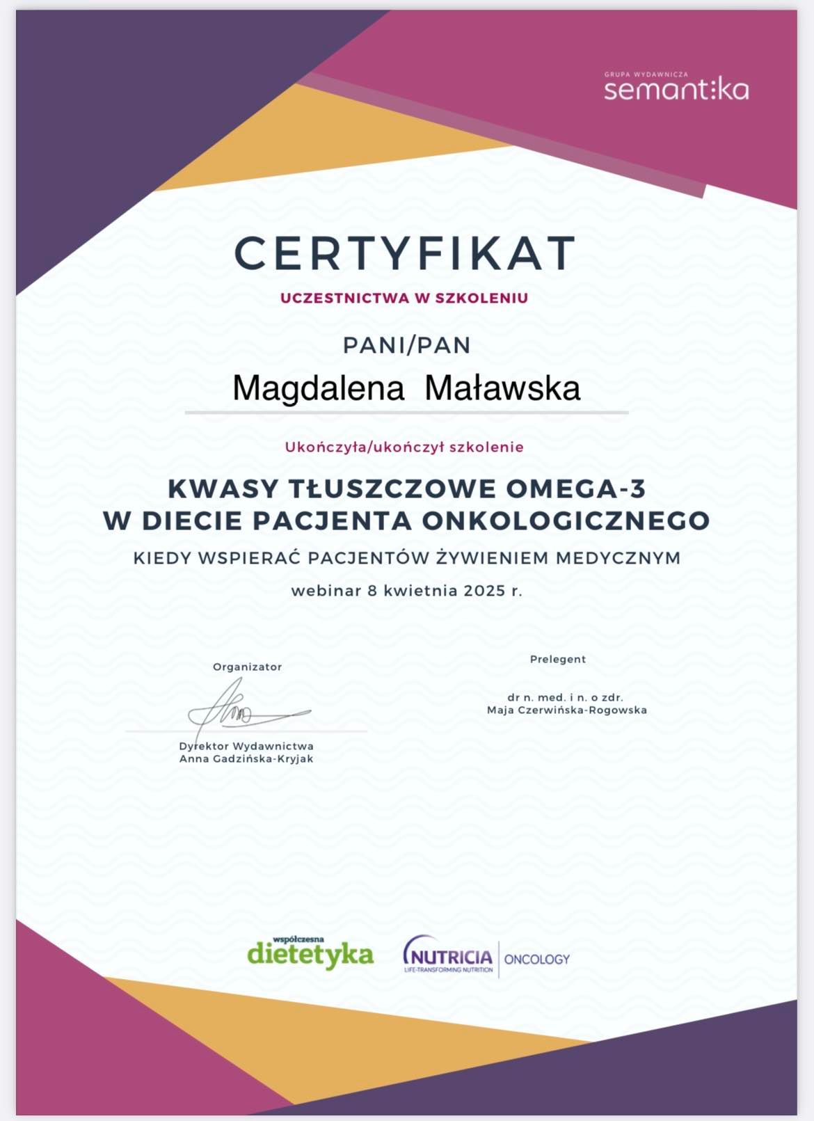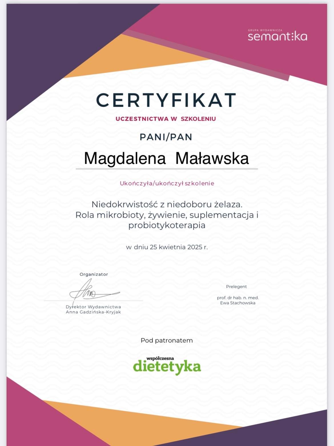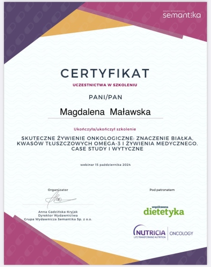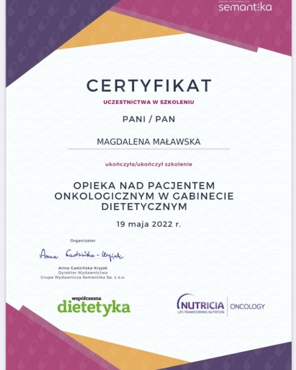 Miałam przyjemność skorzystać z kolejnych konsultacji u Pani Magdy i jestem bardzo zadowolona z wizyty. Od samego początku czułam się wysłuchana i zaopiekowana. Dietetyk przeprowadził szczegółowy wywiad, zadał trafne pytania i poświęcił mi tyle czasu, ile było trzeba. Wszystko zostało jasno wyjaśnione, a dodatkowo otrzymałam wiele cennych wskazówek i motywacji do działania.