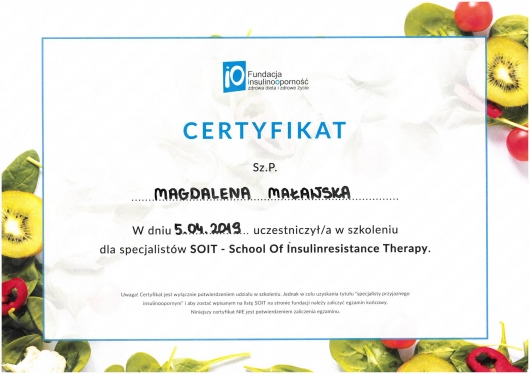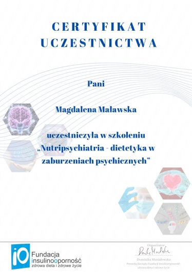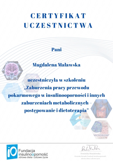 Dietetyk, psychodietetyk, edukator żywieniowy, dietcoach w Poradni Dietetycznej Nutri-Med we Wrocławiu i online, z 20 letnim doświadczeniem w pracy z pacjentem w poradniach dietetycznych; dobry dietetyk Wrocław. Specjalizuję się w insulinooporności - specjalista SOIT (School of insulinresistance therapy), Hashimoto, SIBO, niepłodności, operacjach bariatrycznych i regulacji wagi.