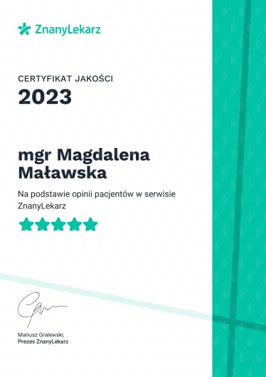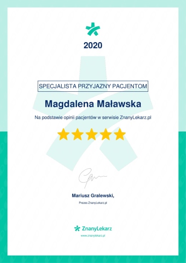 Polecam gabinet pani Magdaleny Maławskiej, porady są bardzo praktyczne i skuteczne. Przyjazna atmosfera, indywidualne podejście, pełny profesjonalizm.