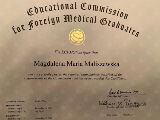 Obecnie jestem lekarzem w trakcie specjalizacji z psychiatrii dorosłych w Wojewódzkim Szpitalu Zespolonym im. Ludwika Rydygiera w Toruniu, planowany termin ukończenia: marzec 2025 rok. Jestem certyfikowanym psychoterapeutą poznawczo- behawioralnym - nr 1433.