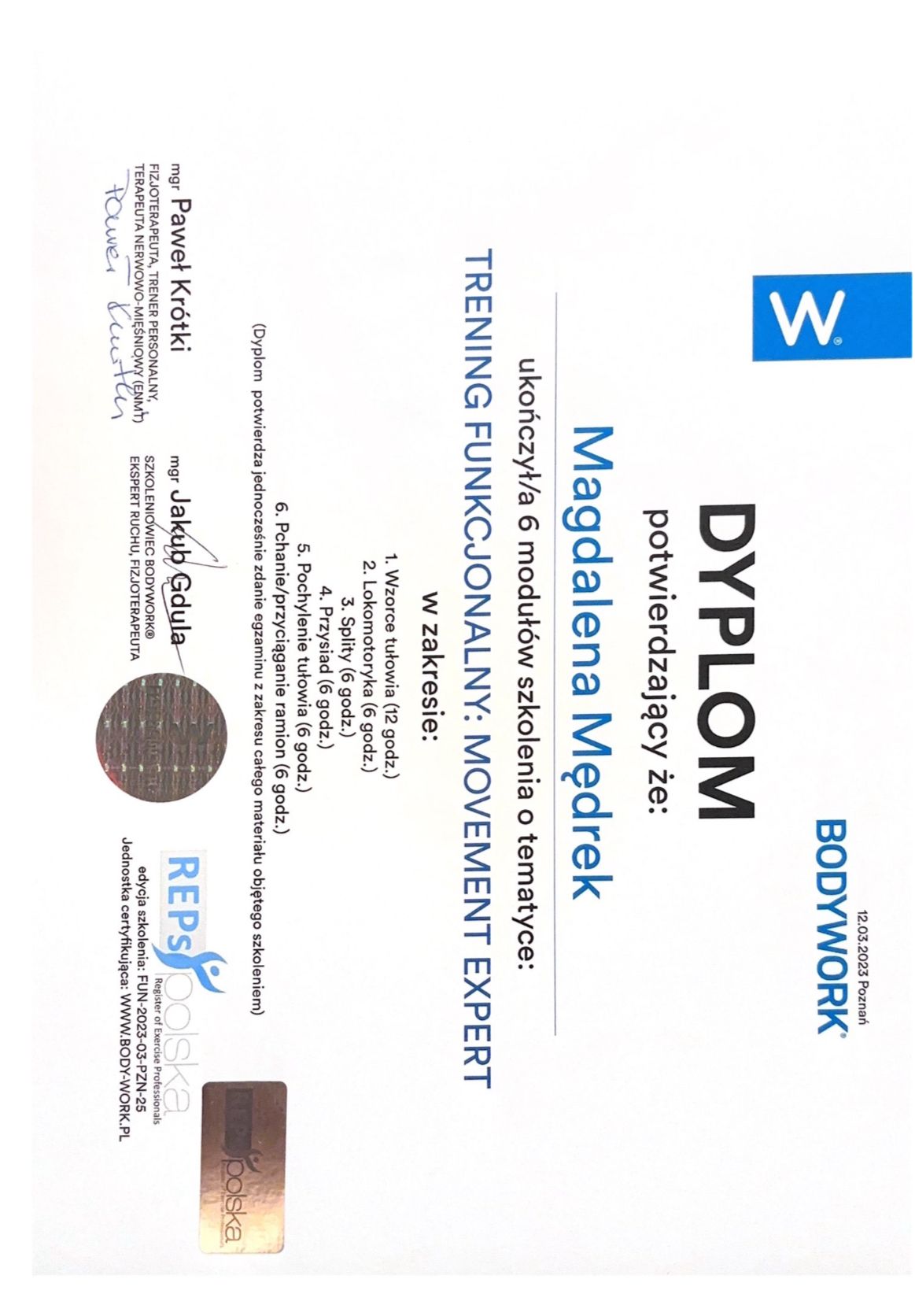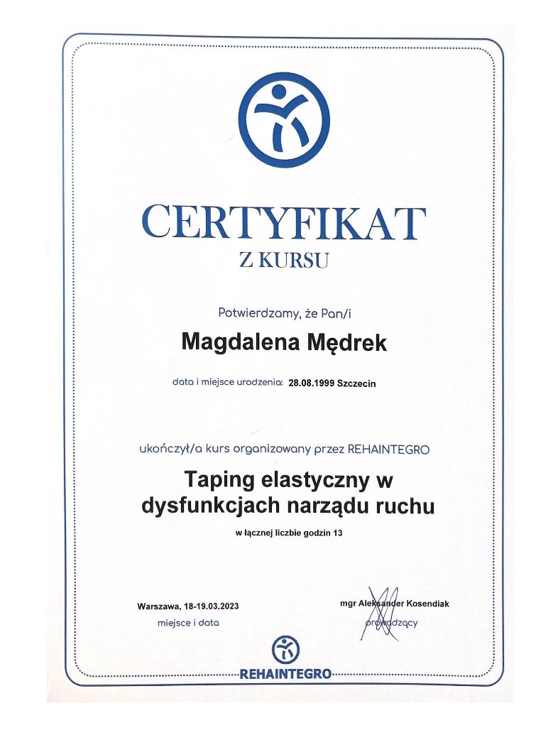 Wierzę, że kluczem do trwałych rezultatów jest zmiana nawyków ruchowych, dlatego w swojej praktyce łączę terapię manualną z indywidualnie dobranymi ćwiczeniami funkcjonalnymi. Dzięki wiedzy i doświadczeniu z zakresu treningu pomagam pacjentom poprawić jakość ich codziennego życia i utrwalić osiągnięte efekty.