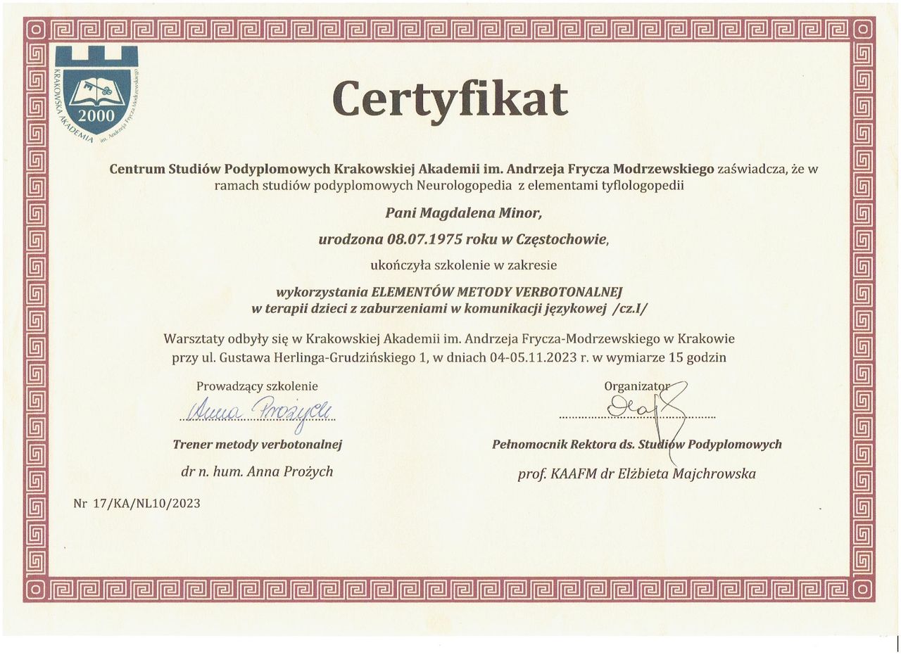 Specjalizuję się w terapii logopedycznej dzieci w spektrum autyzmu oraz z opóźnionym rozwojem mowy. Jako doświadczony pedagog i neurologopeda jestem zwolenniczką holistycznego, interdyscyplinarnego podejścia w terapii