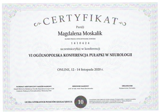 Czy Magdalena Moskalik przyjmuje online, bez konieczności pojawiania się w placówce?Nie, w tym momencie Magdalena Moskalik nie oferuje konsultacji online.
