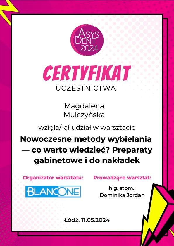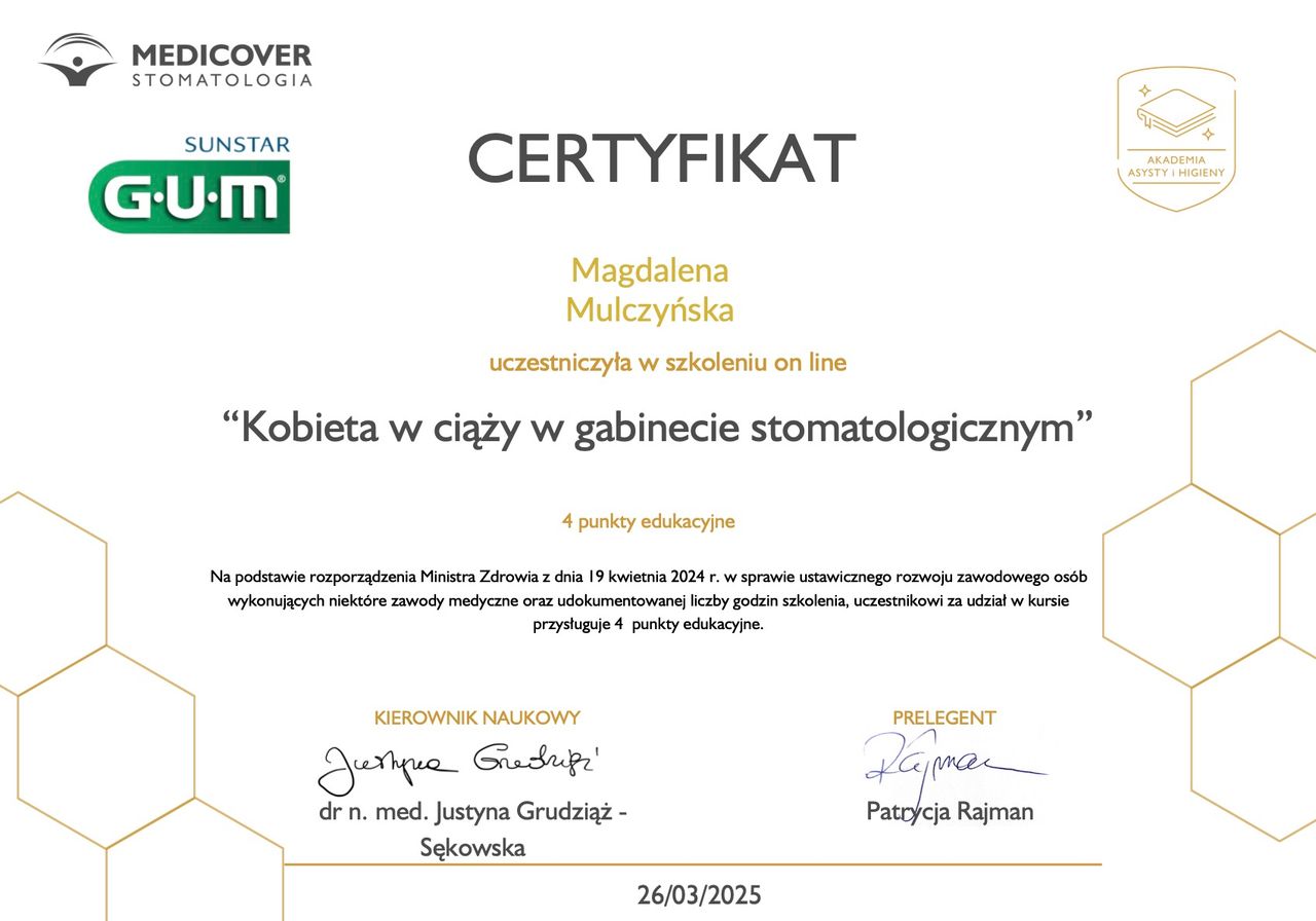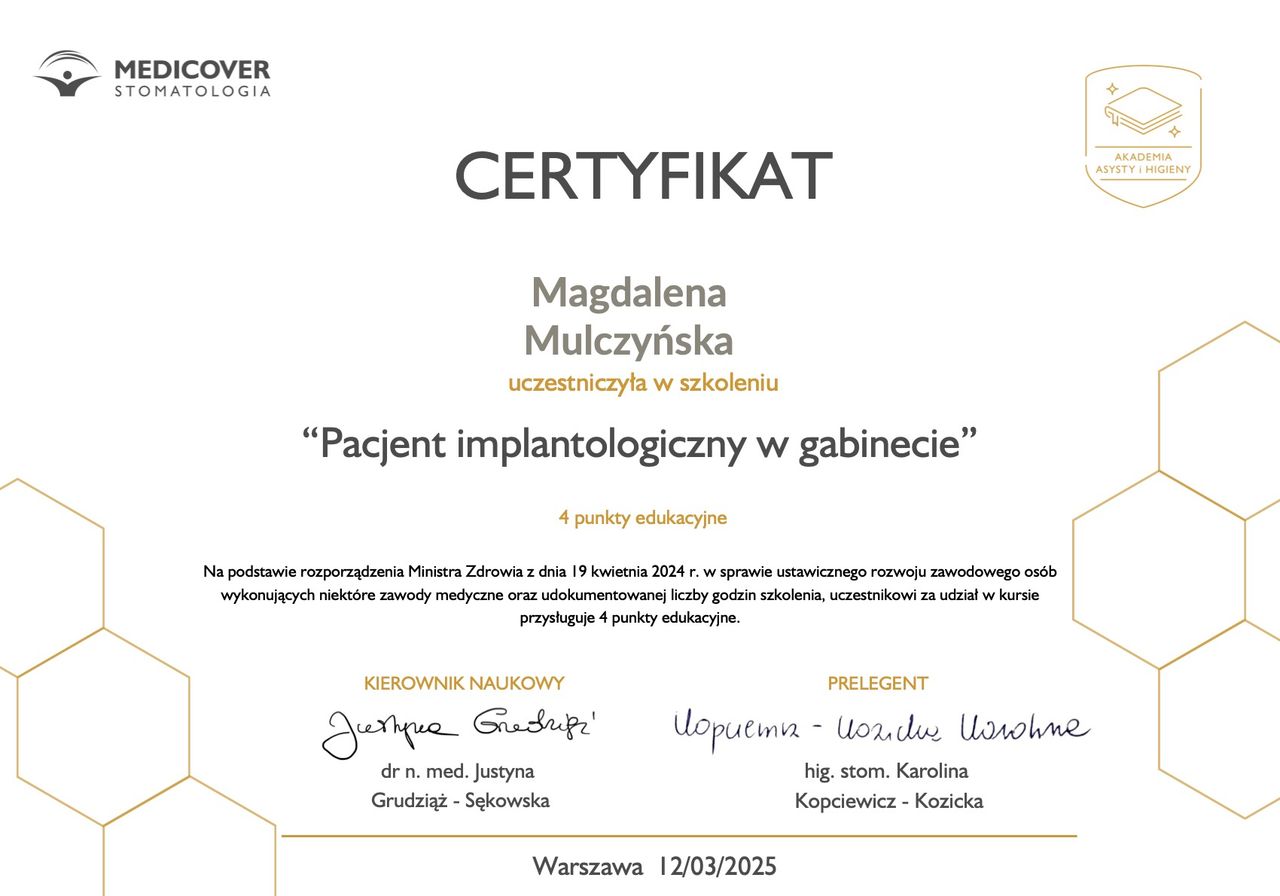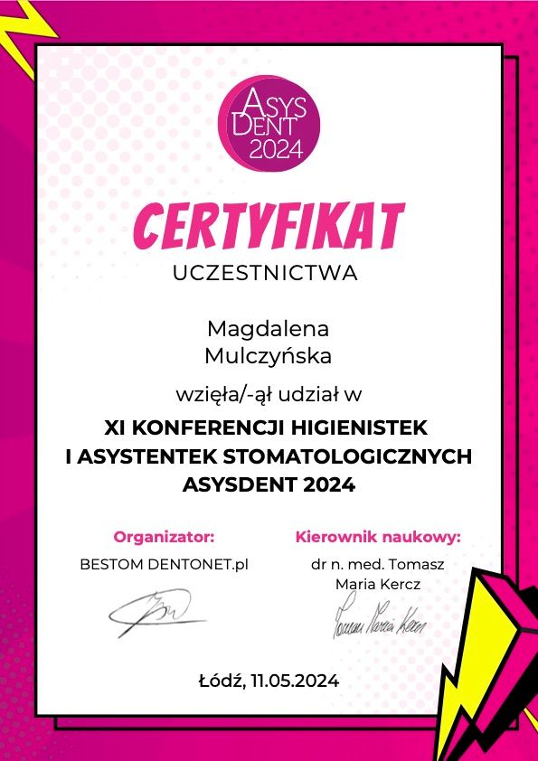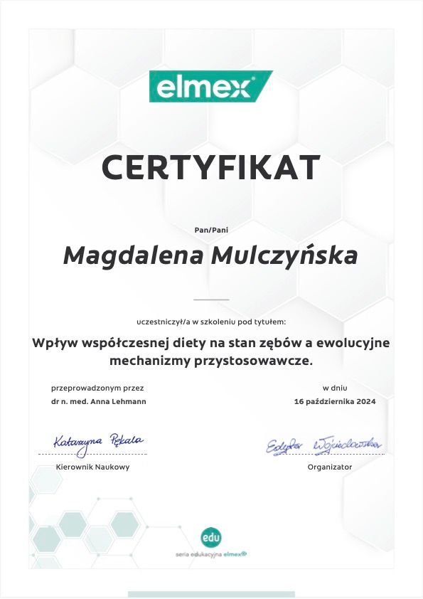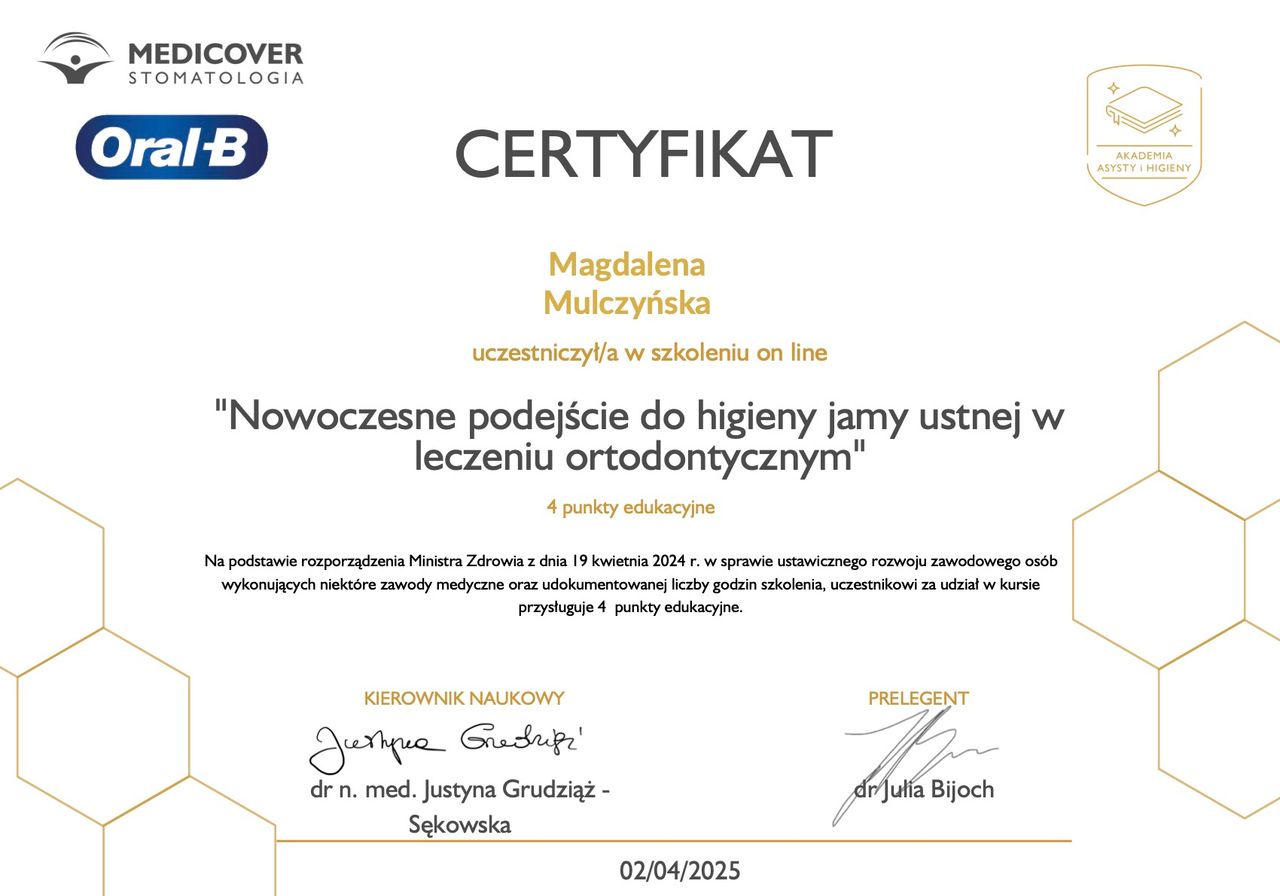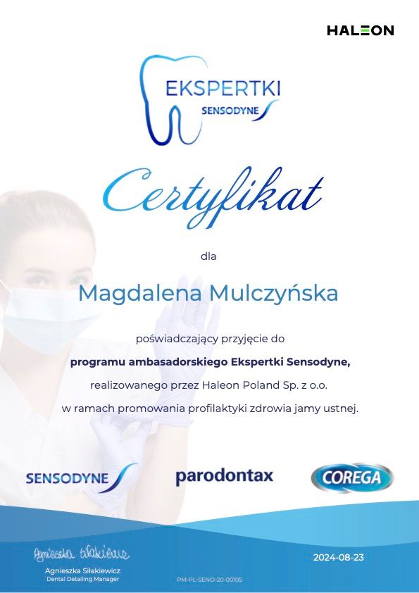 Z pełnym przekonaniem polecam Panią Magdalenę jako higienistkę stomatologiczną.