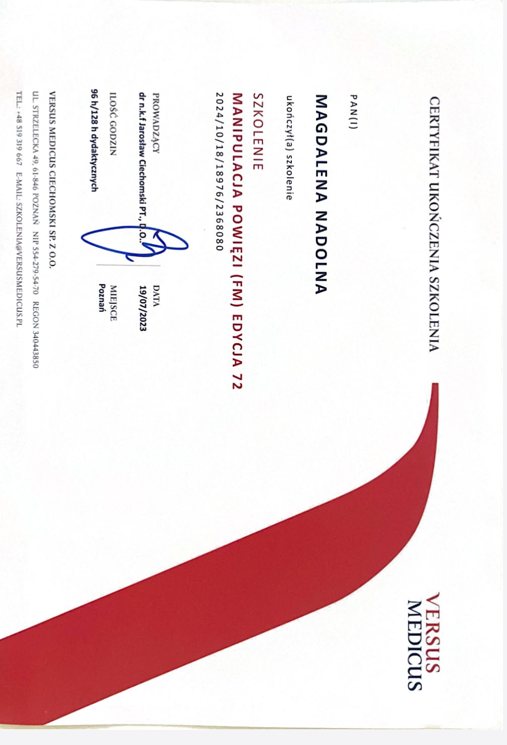 głębokich oraz Fascial Manipulation (Level 1 i 2), z indywidualnie dobranymi ćwiczeniami,