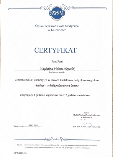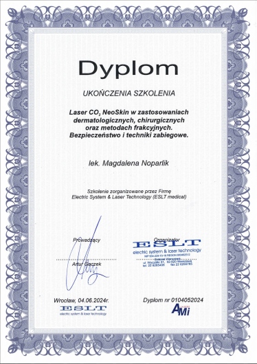 Dzień dobry.Jestem bardzo zadowolona z wizyty u p.dr Noparlik.Laser frajcyjny robię od 12 mose 13 lat a poniważ jestem uczulona na ligno potrzebuję więcej precyzji aby ten zabieg był dla mnie do zniesienia. Profesja p doktor oraz duża kultura pozwoliły na to abym się czuła komfortowo.