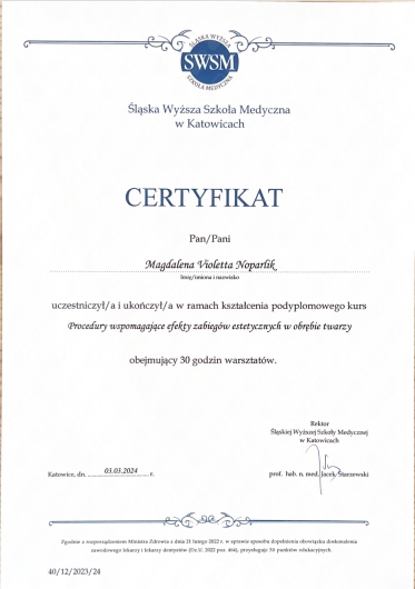 Z całego serca polecam Panią Doktor! Profesjonalne podejście, ogromna wiedza i indywidualne podejście do pacjenta sprawiają, że czułam się w pełni zaopiekowana. Zabieg został dokładnie omówiony przed wykonaniem, wszystko przebiegło bezboleśnie i w miłej atmosferze. Efekt przeszedł moje oczekiwania – naturalny, ale widoczny. Na pewno wrócę!