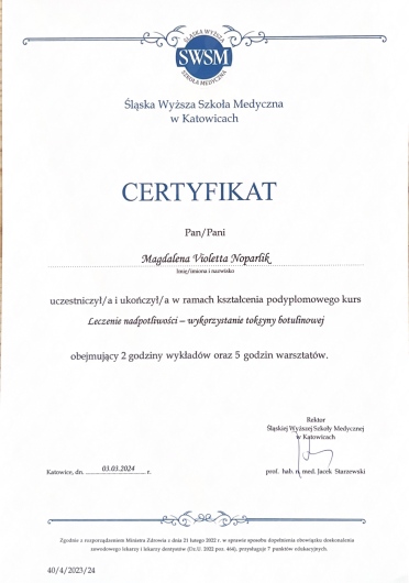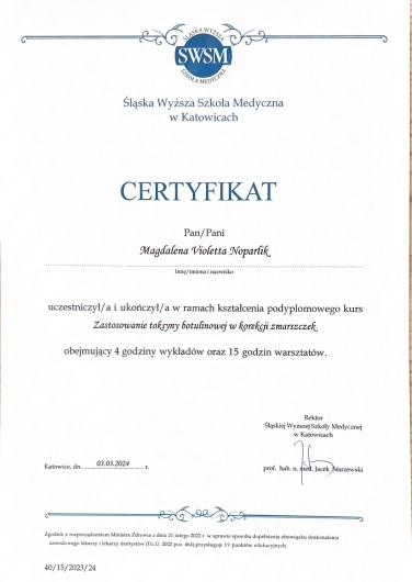 Bardzo polecam dr Noparlik! Krótki czas oczekiwania, szybkość wykonania, przyjemna atmosfera, zaangażowanie przy wykonywaniu zabiegu oraz pełen profesjonalizm. Pani dr sprawnie się posługuje igłą, niczym czarodziej różdżką! Efekt po przerósł moje oczekiwania. Zdecydowanie wrócę na kolejną wizytę.