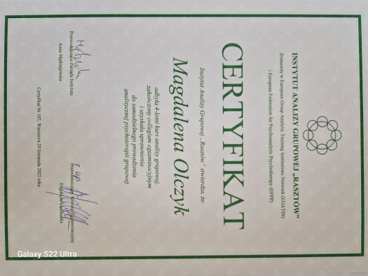 Po wcześniejszej terapii indywidualnej zdecydowałam się na terapię grupową u p. Magdy. I choć czasem było trudno, uważam, że było warto. Spojrzałam na siebie zupełnie z innej perspektywy. Moje relacje z ludźmi znacząco się poprawiły. Jestem wdzięczna grupie za cierpliwość, uważność i wyrozumiałość, a Pani Magdzie za tak profesjonalne prowadzenie. Jej interpretacje zawsze dawały do myślenia i przynosiły nowe rozumienie. Doceniam jej mądrość i wiedzę a nawet ustalony setting na który miałam na początku sprzeciw :-). P. Magda to życzliwa osoba i konkretna. Bardzo się cieszę, że do niej trafiłam.