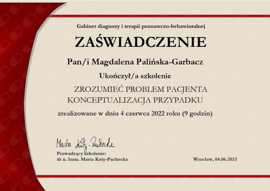 Liczę na skuteczną współpracę.• Gabinet wsparcia psychoterapeutyczno-seksuologicznego Magdalena Palińska-Garbacz • Konsultacja psychologiczna •
