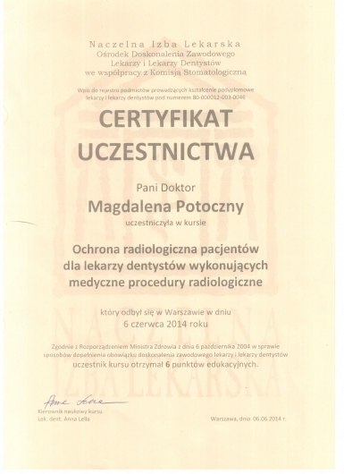 Szczerze polecam, pełen profesjonalizm, rzeczowość i empatia. U Pani Magdaleny leczyłem, korygowałem i odbudowywałem wszystkie zęby - ani razu nie wyszedłem niezadowolony z gabinetu (czyli przez ponad rok). Polecam wszystkim którzy chcą w końcu przełamać strach przed wizytą u stomatologa.