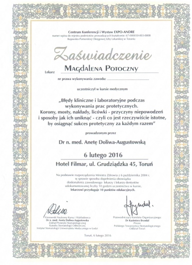 Jaki jest zakres porad oferowanych przez Magdalena Potoczny - Skrzyńska?Magdalena Potoczny - Skrzyńska to protetyk stomatologiczny. Na podstawie swojego doświadczenia i wykształcenia Magdalena Potoczny - Skrzyńska oferuje usługi takie jak: konsultacja protetyczna.