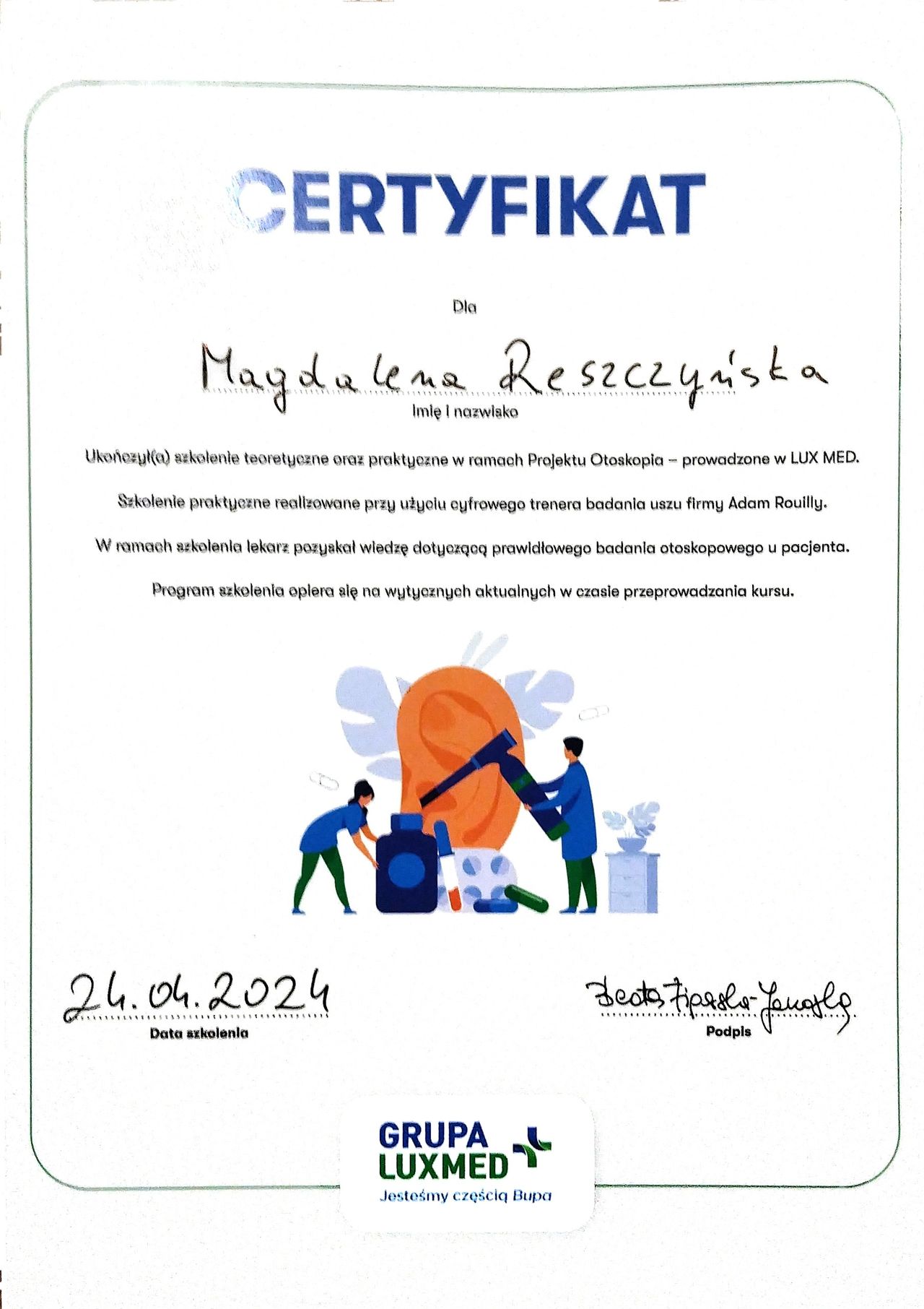 - wystawianie zaświadczeń np. o stanie zdrowia, do zabiegów