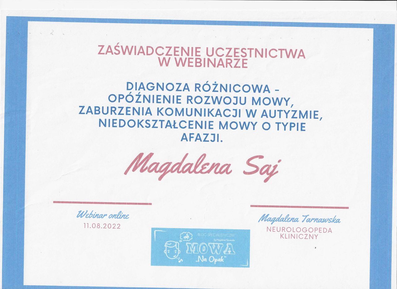 Czy Magdalena Saj przyjmuje online, bez konieczności pojawiania się w placówce?Nie, w tym momencie Magdalena Saj nie oferuje konsultacji online.