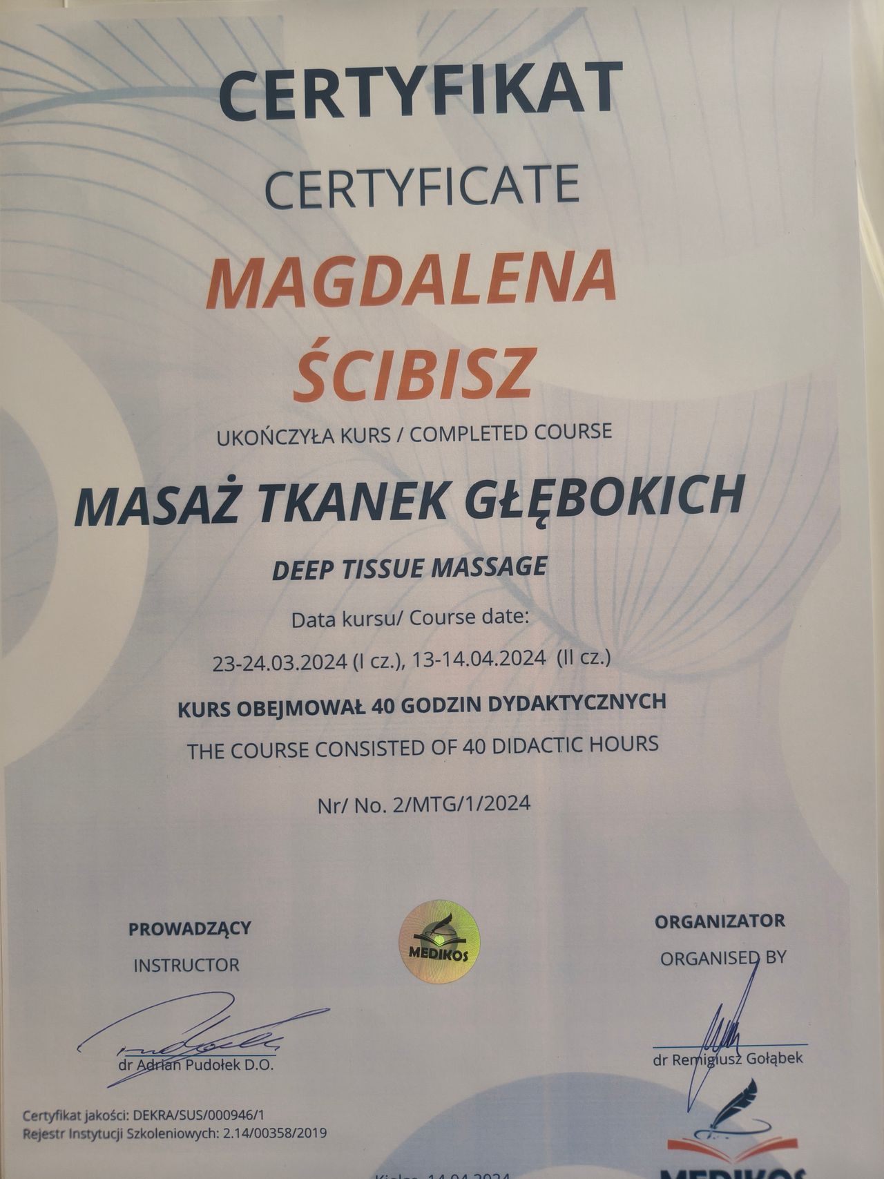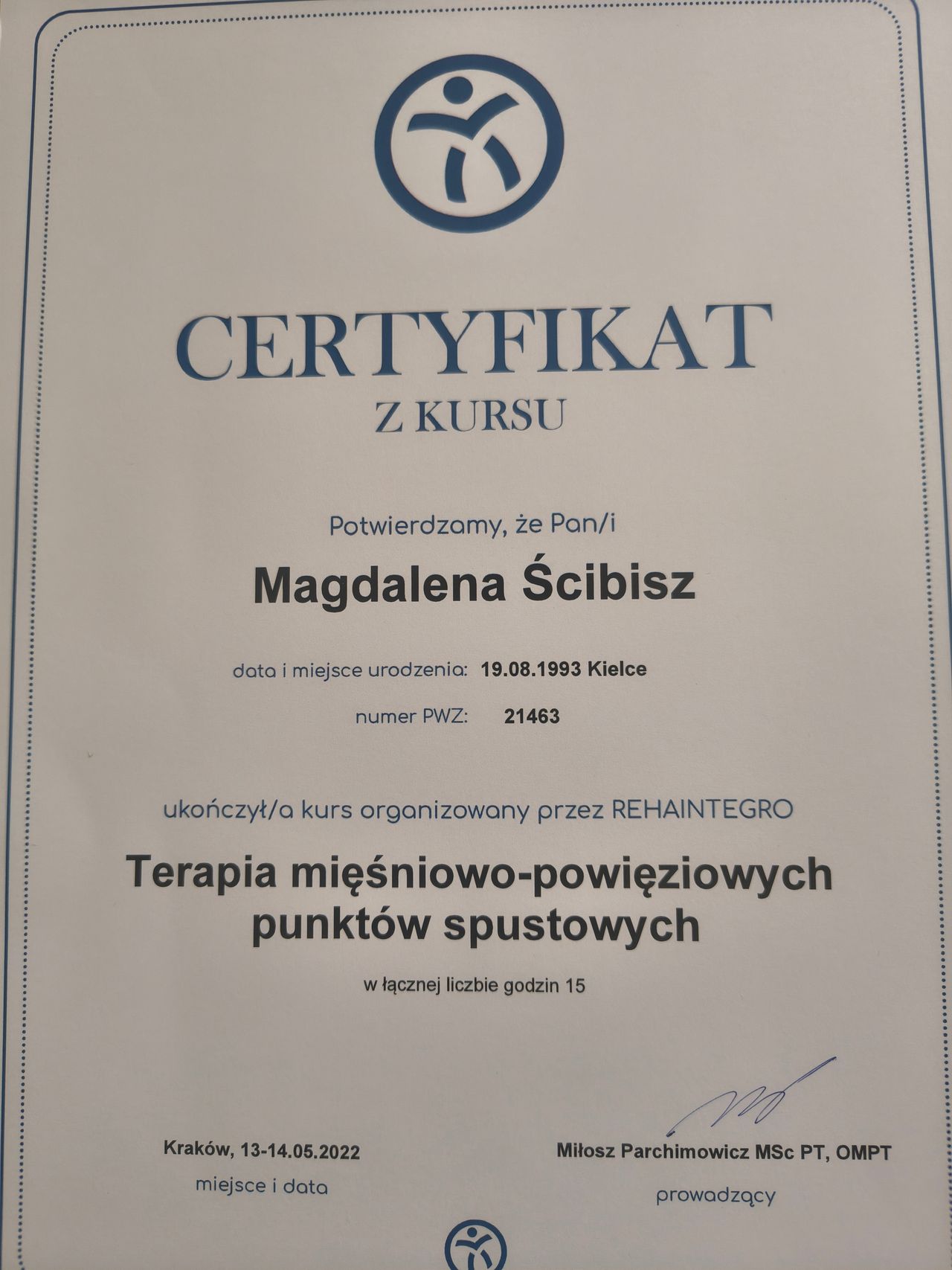 regeneracji. Pracuję w oparciu o empatyczne podejście, dostosowując terapię do potrzeb i możliwości pacjenta, co przekłada się na wysoką skuteczność prowadzonych procesów terapeutycznych.