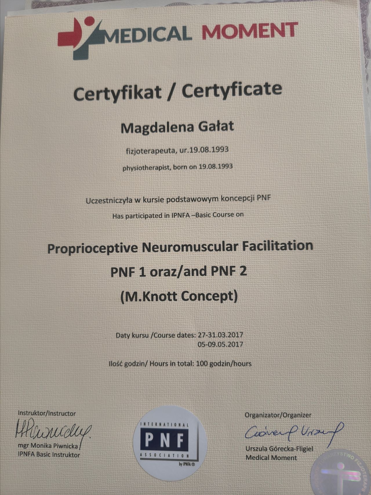 Dyplomowana fizjoterapeutka z 8-letnim