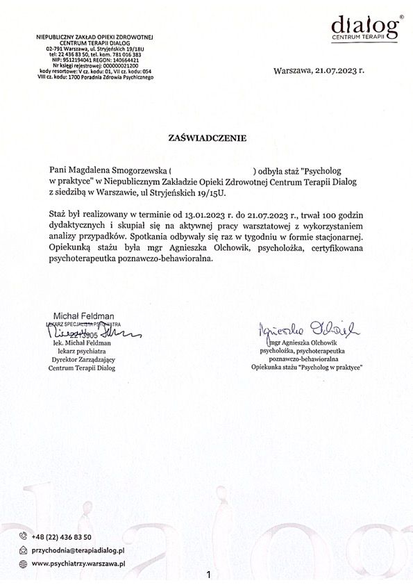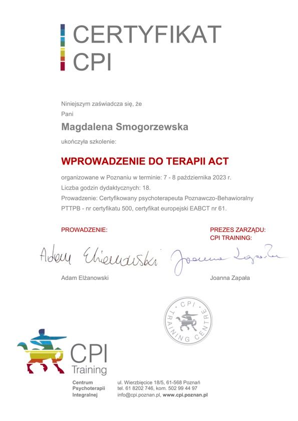 Miejsce spotkań: Centrum Terapii Blisko przy ul. Franciszka Marii Lanciego 14/u153, Warszawa-Ursynów