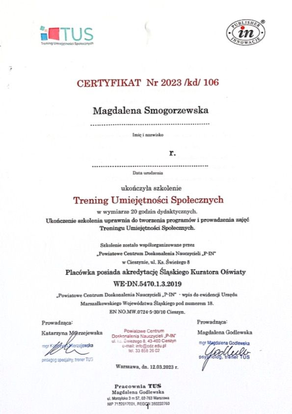 Koszt udziału: 150 zł/spotkanie – płatne z góry za cały miesiąc