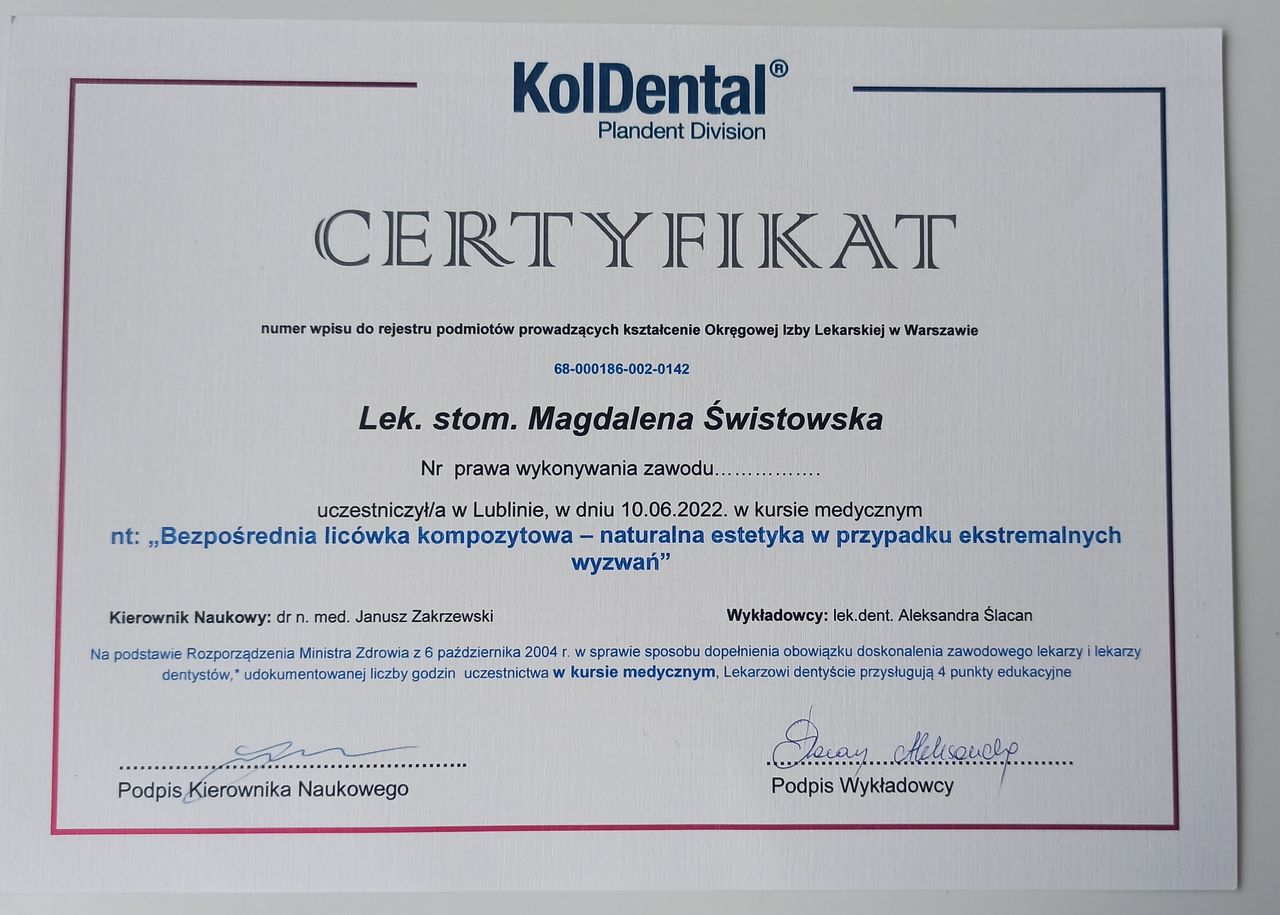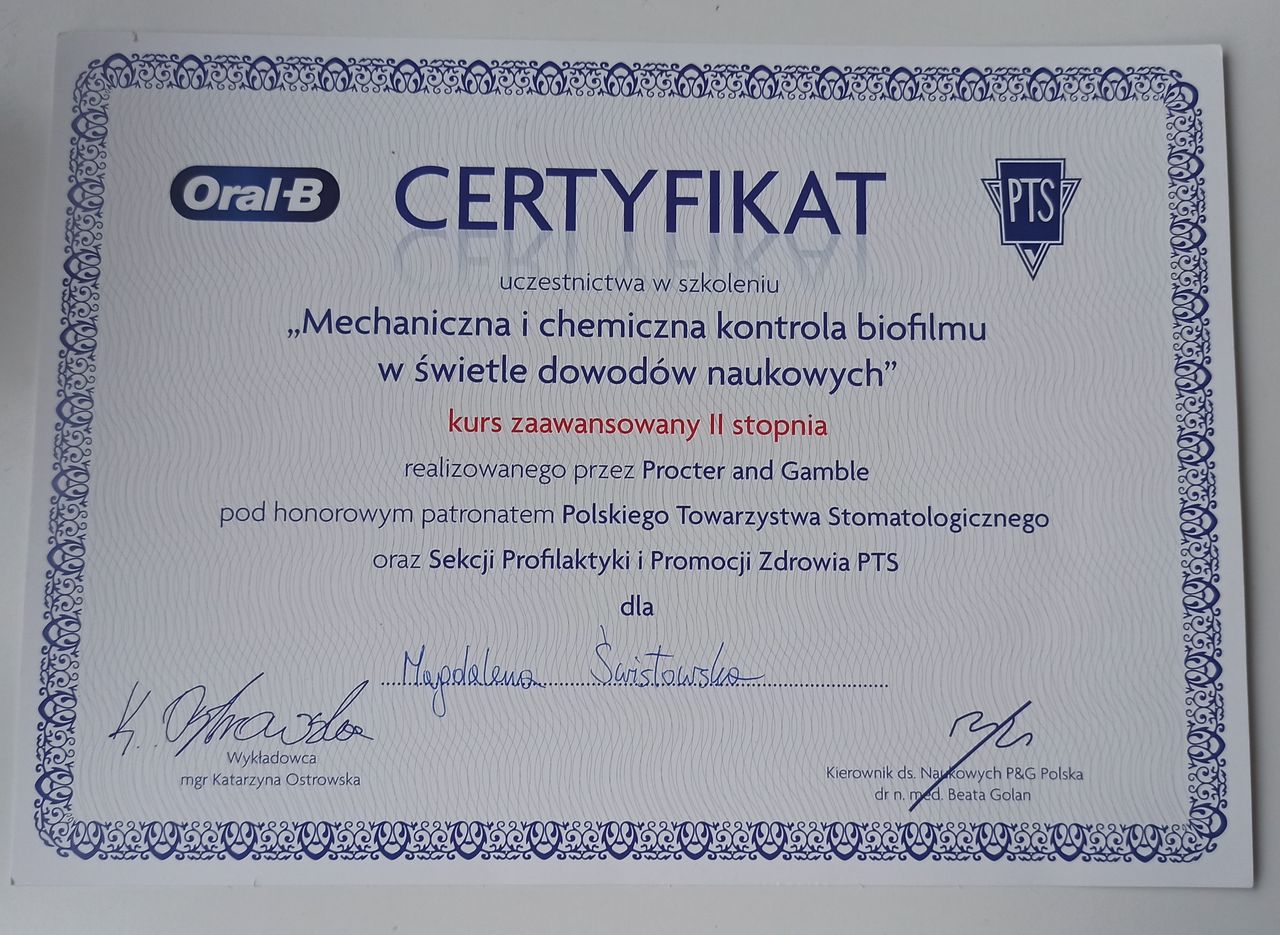 Nieustannie poszerzam swoją wiedzę, regularnie uczestnicząc w szkoleniach i konferencjach. Pracuję w powiększeniu z wykorzystaniem lup, starając się oferować nowoczesne i skuteczne metody leczenia. Moja praca to nie tylko profesjonalizm i rzetelność. To także indywidualne podejście oraz troska o komfort i dobre samopoczucie każdego pacjenta.