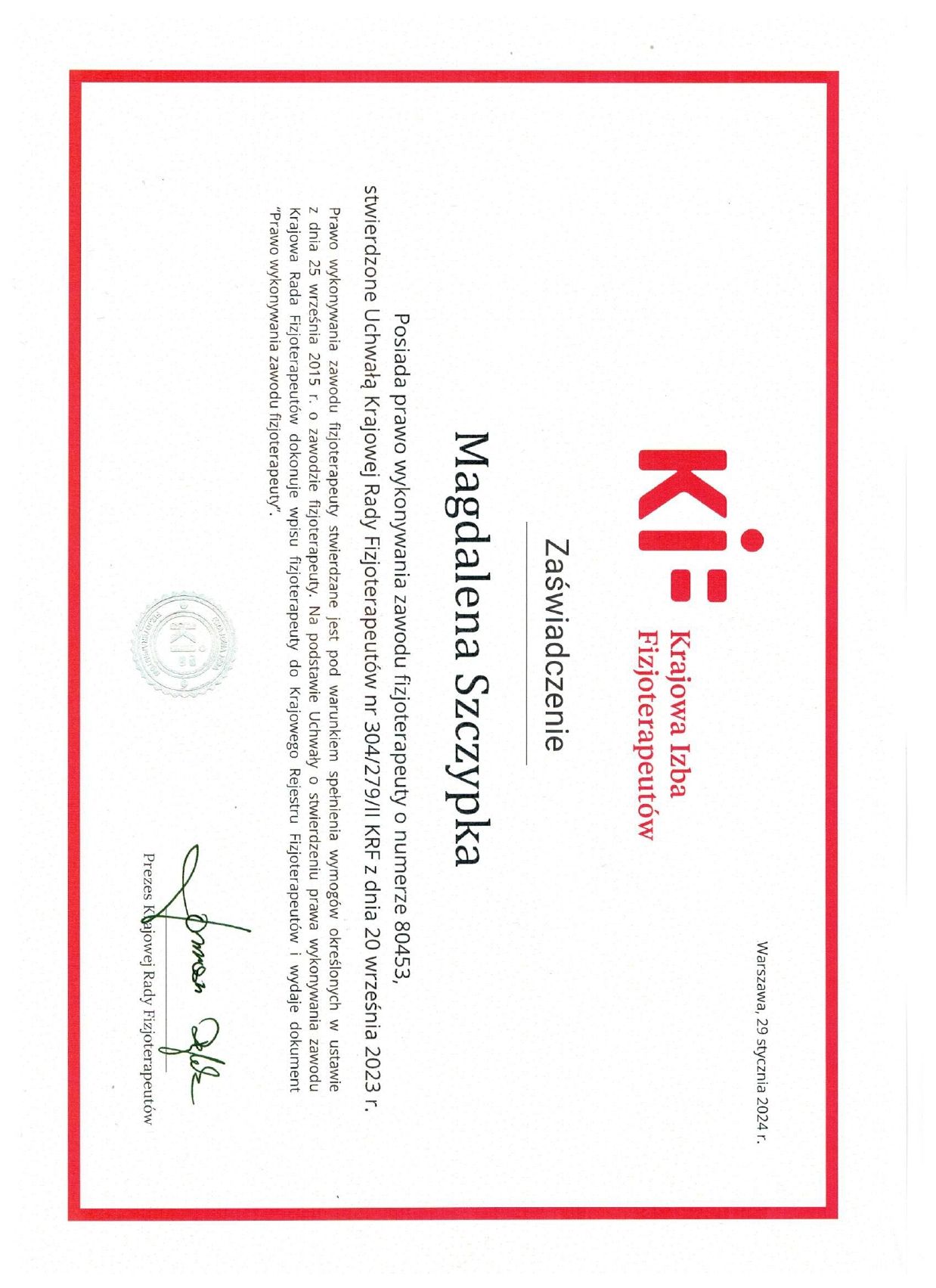 Jestem fizjoterapeutką i trenerką. Specjalizuję się w fizjoterapii ortopedycznej, sportowej, ze szczególnym uwzględnieniem obręczy barkowej. Pracuje głównie z osobami dorosłymi oraz sportowcami na poziomie amatorskim i klubowym.