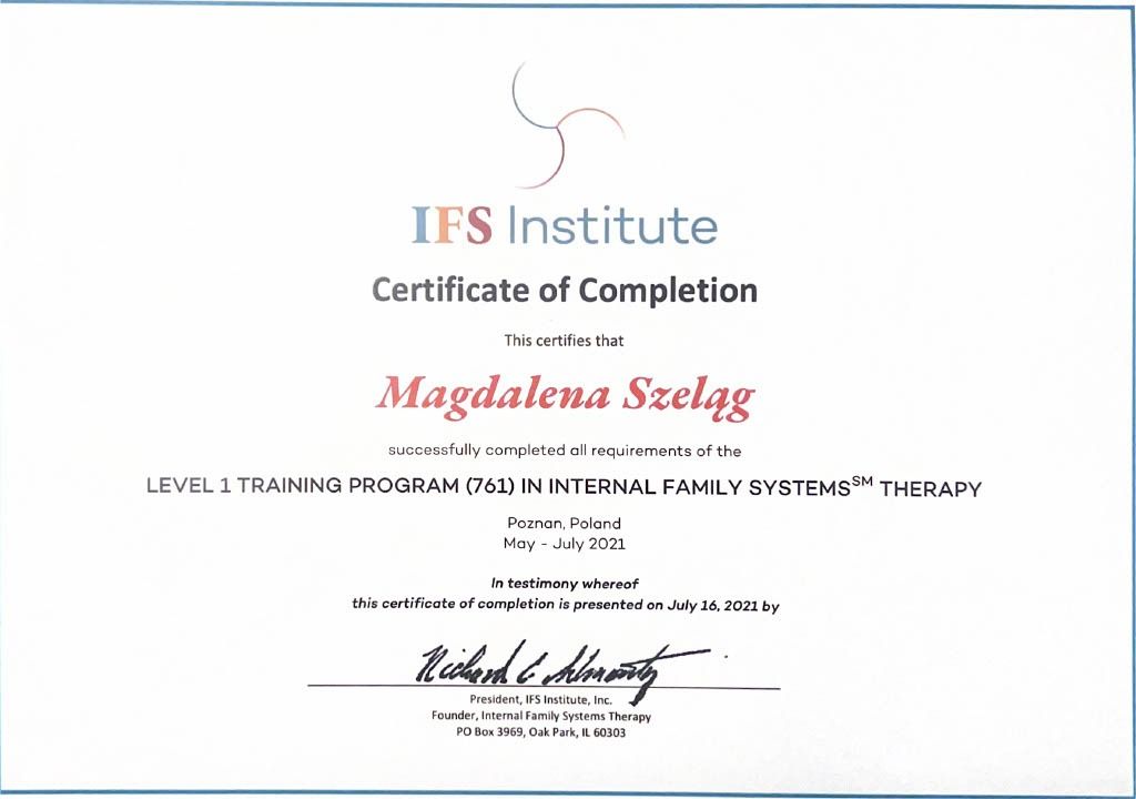 Aktualnie kontynuuję kształcenie w Szkole Psychoterapeutów w nurcie Gestalt w Instytucie Integralnej Psychoterapii Gestalt w Krakowie.