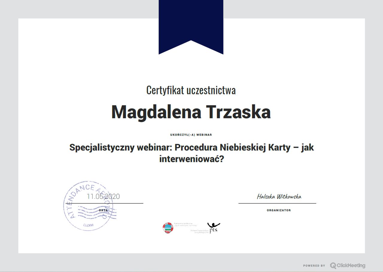 Regularnie poszerzam swoją wiedzę, mam za sobą liczne szkolenia, m.in.: