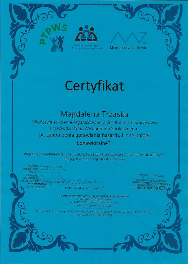- Zaburzenia uprawiania hazardu i inne nałogi behawioralne (Polskie Towarzystwo Przeciwdziałania Wykluczeniu Społecznemu),