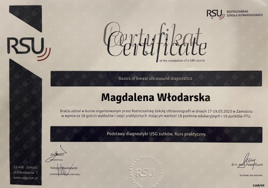Do zespołu lekarskiego Sonicus w Zabrzu dołącza lekarka Magdalena Włodarska rezydentka w trakcie specjalizacji w zakresie ginekologii i położnictwa, którą realizuje w Oddziale Położnictwa i Ginekologii Szpitala Powiatowego w Chrzanowie.