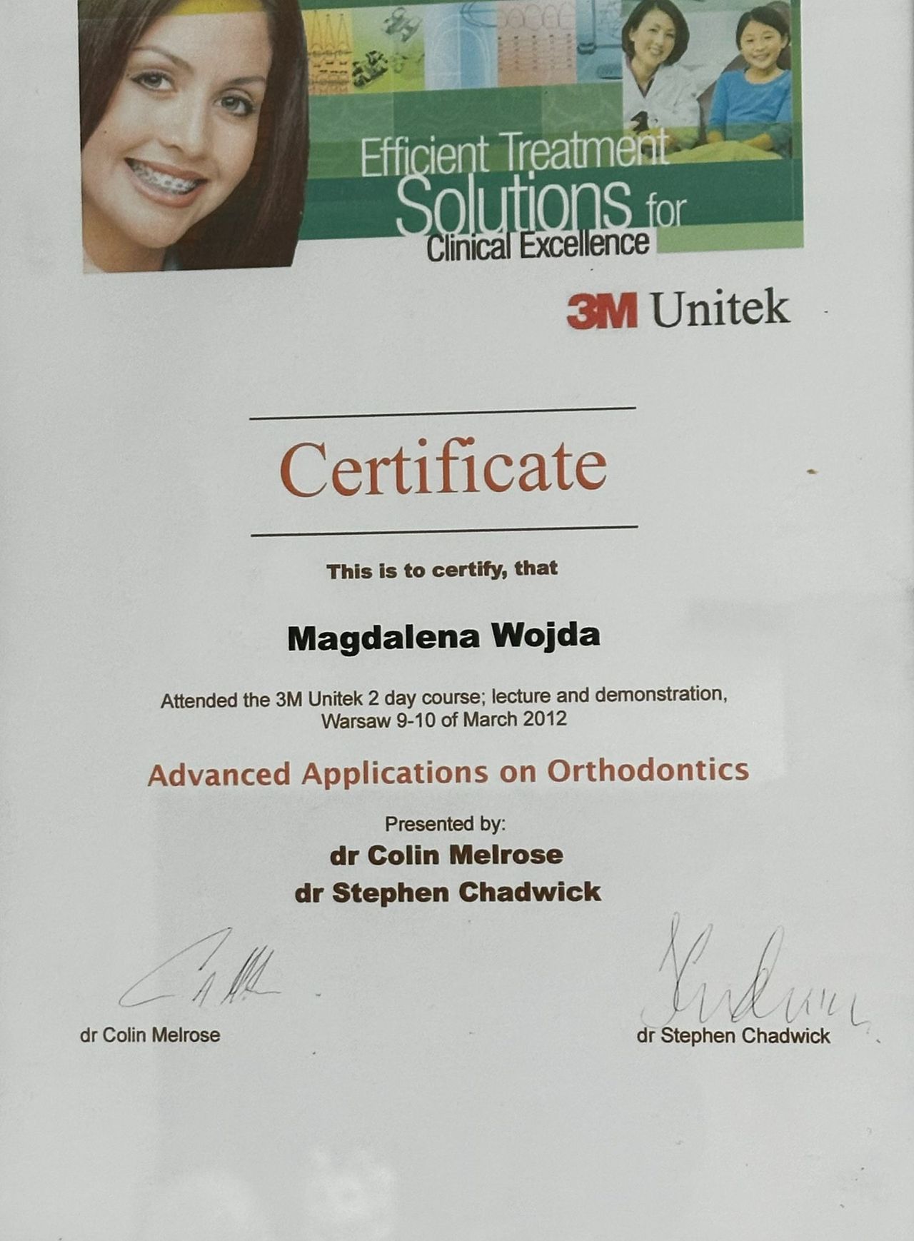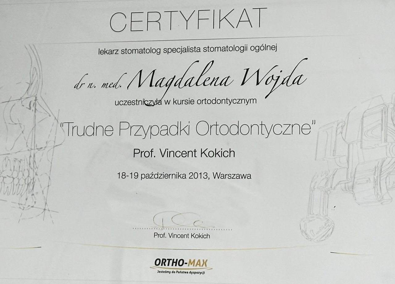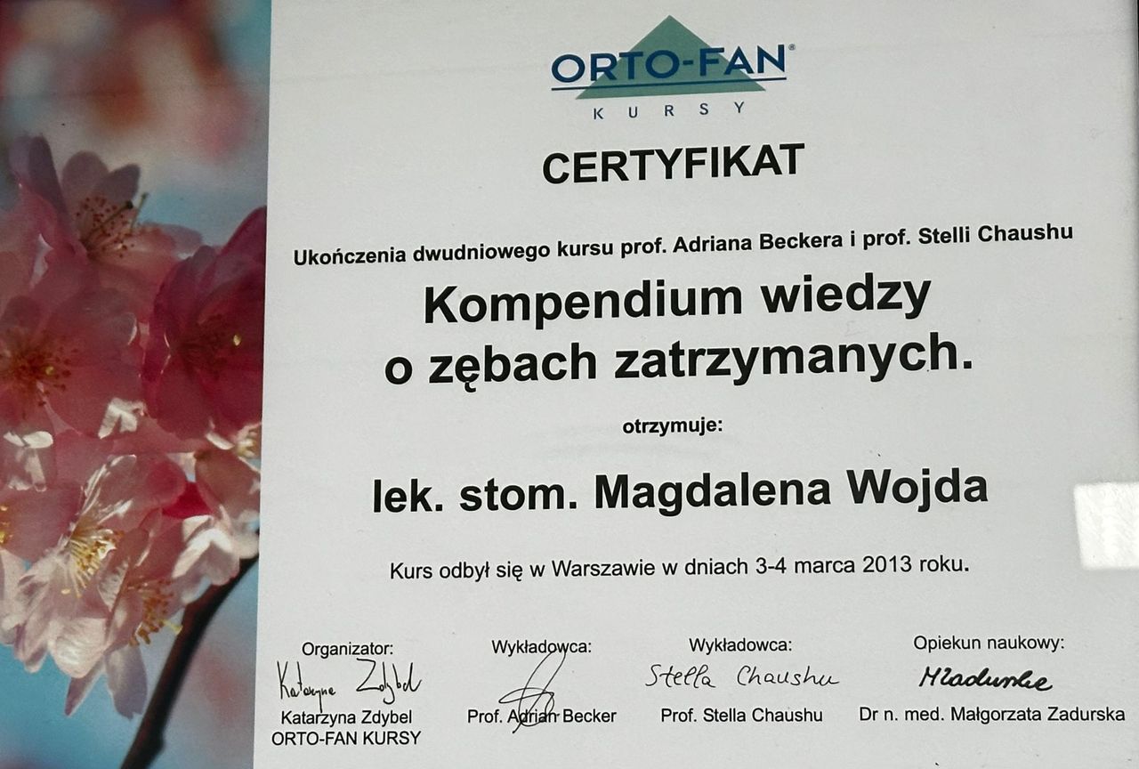 Wiedzę i praktykę ortodontyczną zdobyłam szkoląc się u licznych lekarzy ortodontów, uczestnicząc równocześnie w wielu kursach i konferencjach z zakresu ortodoncji w kraju oraz zagranicą.