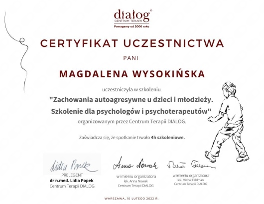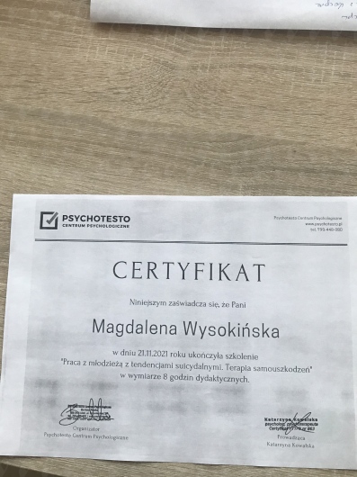 Chciałabym serdecznie polecić Panią Magdalenę jako psychologa. Jest niezwykle skrupulatna i profesjonalna, a jednocześnie pełna empatii i zrozumienia. Potrafi uważnie słuchać, co daje poczucie, że każda kwestia jest dla niej ważna. Dzięki swojej dociekliwości trafnie identyfikuje przyczyny trudności i wspólnie z dzieckiem pracuje nad ich rozwiązaniem. Jest osobą bardzo przyjazną i budującą zaufanie, co sprawia, że mój syn czuje się swobodnie podczas spotkań. Jej wsparcie przynosi realne efekty. Jaki rodzic również mam wsparcie i realną pomoc. Gorąco polecam!