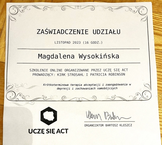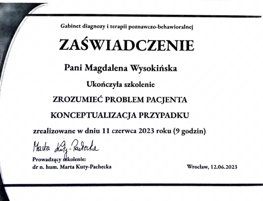 Pani Magdalena to cudowny specjalista. Ma duże doświadczenie, ogromną wiedzę, wyrozumiałość oraz empatię i zdrowe podejście do pacjenta. Jestem w 100% zadowolony z terapii z Panią. Szczerze nie mogę polecić lepszego psychologa.