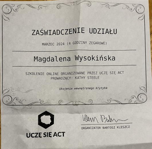 Pani Magda to bardzo sympatyczna i empatyczna osoba. Umie słuchać i zawsze daje narzędzia do pracy nad danym problemem. Atmosfera na spotkaniach jest bardzo przyjazna.