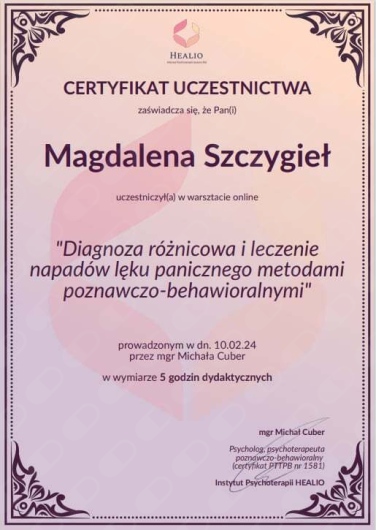 Pani Magdalena jest niezwykle ciepłą, empatyczną i zaangażowaną Panią psycholog. Podczas spotkań stwarza atmosferę pełną zrozumienia i zaufania, w taki sposób, że czasem można było zapomnieć, że rozmawia się z psychologiem, co tylko ułatwia rozmowę. Każda konsultacja dawała poczucie spokoju i nową energię do działania na co dzień.