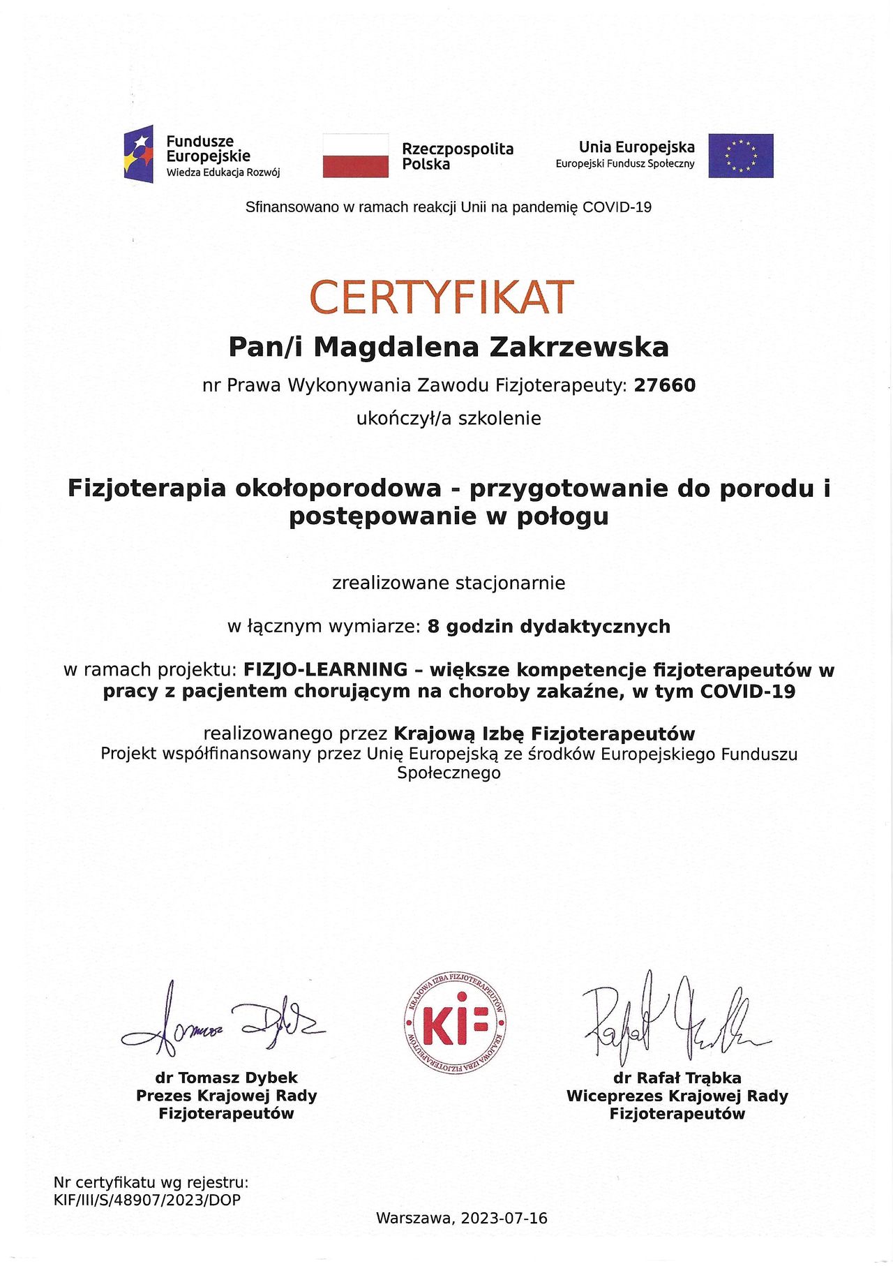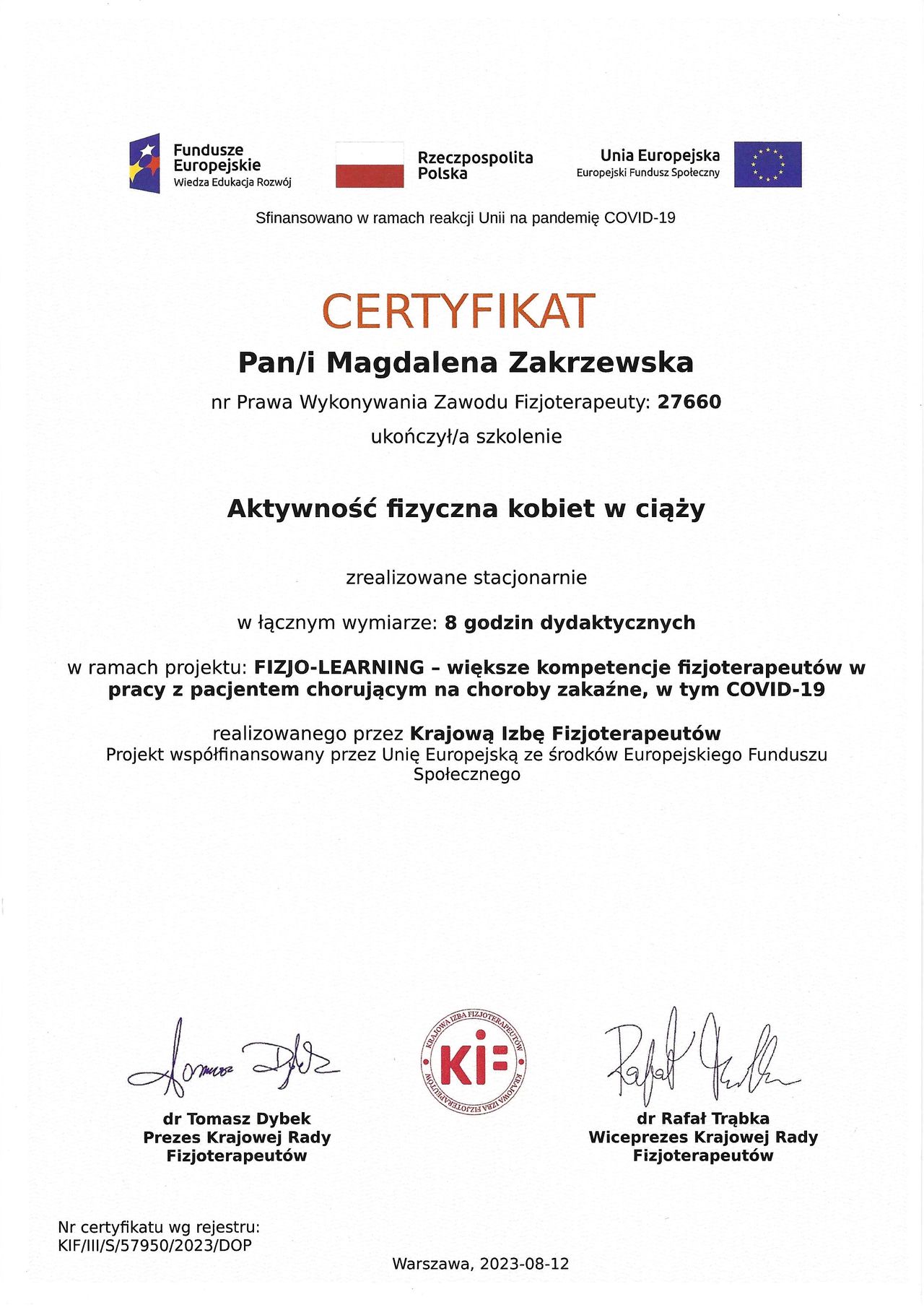 Jaki jest zakres porad oferowanych przez Magdalena Zakrzewska?Magdalena Zakrzewska to fizjoterapeuta. Na podstawie swojego doświadczenia i wykształcenia Magdalena Zakrzewska oferuje usługi takie jak: fizjoterapia uroginekologiczna, konsultacja fizjoterapeutyczna, fizjoterapia kobiet w ciąży / fizjoterapia okołoporodowa, fizjoterapia uroginekologiczna - nietrzymanie moczu, fizjoterapia uroginekologiczna - dysfunkcje seksualne, terapia przy bolesnych menstruacjach, Terapia blizny po cesarskim cięciu, terapia rozejścia mięśni prostych brzucha.