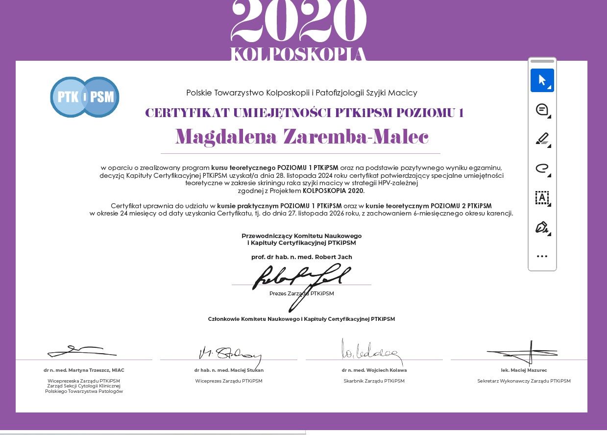 Kompetencje poszerza biorąc udział w kursach i konferencjach.