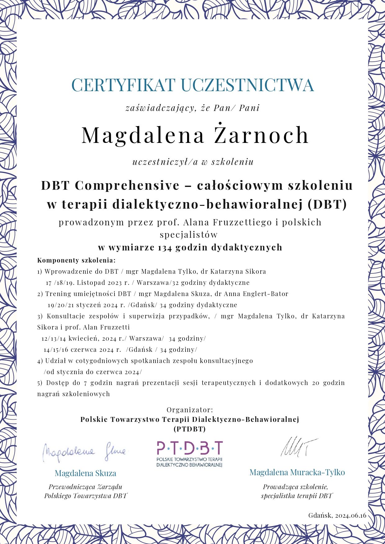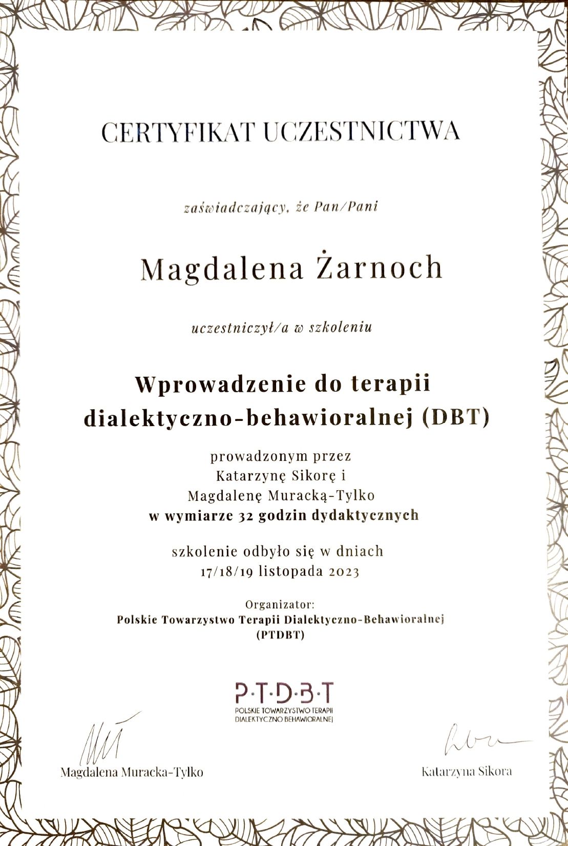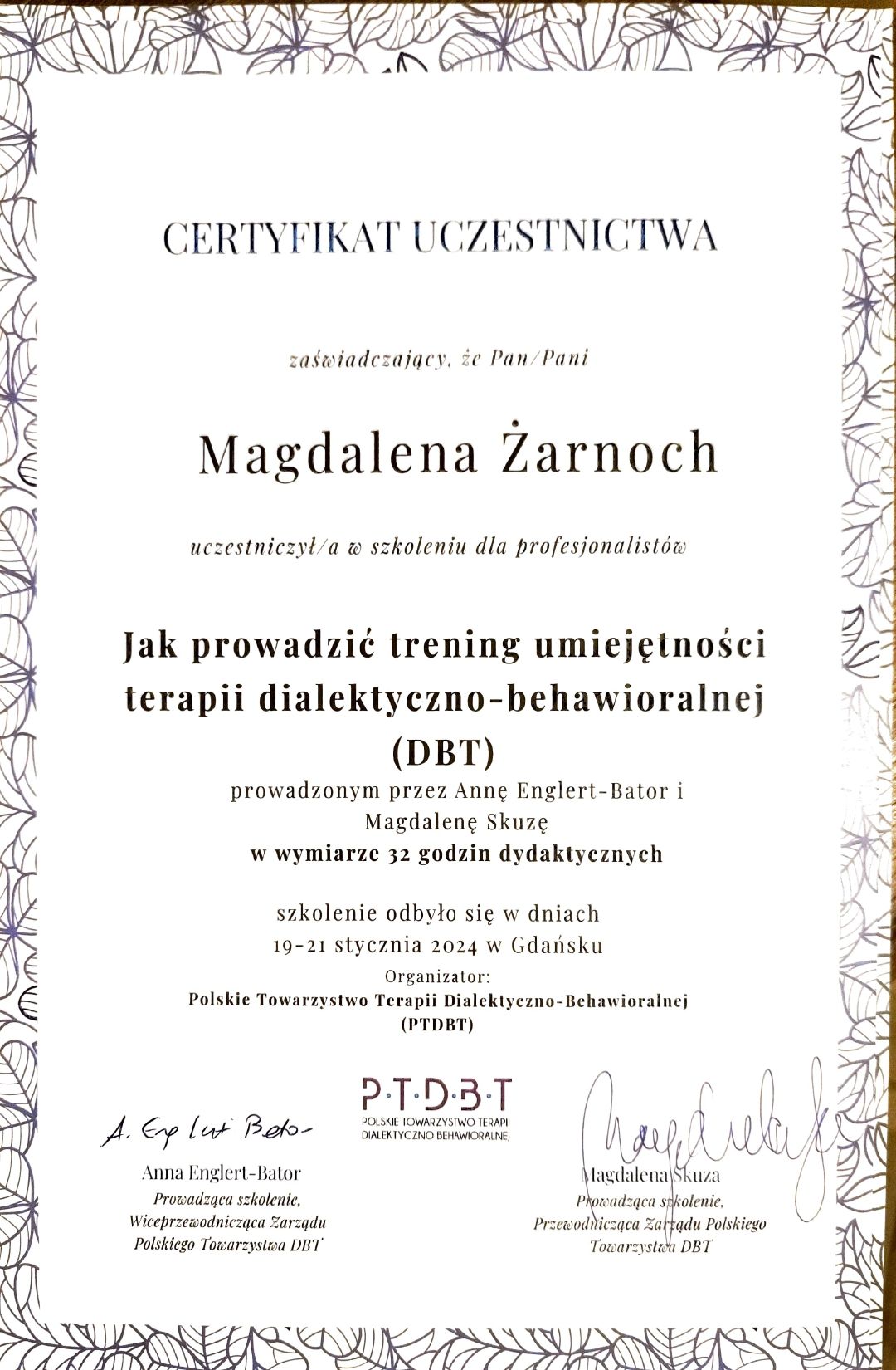 Należę do Polskiego Towarzystwa Terapii Dialektyczno-Behawioralnej.