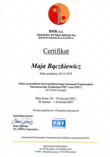 * 2011 - fizjoterapeuta, rehabilitacja indywidualna, przychodnia CKiR ul. Krasińskiego, Wrocław
