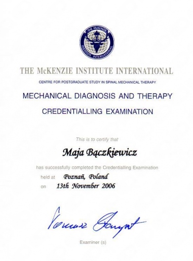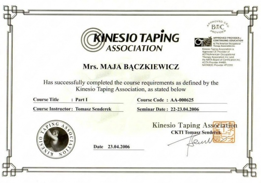 * 2003 - komputerowe badanie wad postawy, działalność gospodarcza w dziedzinie fizjoterapii