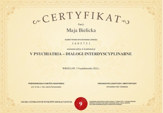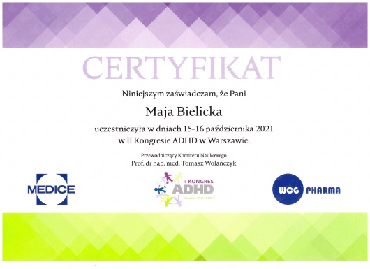 Czy Maja Bielicka przyjmuje online, bez konieczności pojawiania się w placówce?Tak, Maja Bielicka oferuje konsultacje online. Wybierz opcję „konsultacja online” przy umawianiu wizyty, a zobaczysz dostępne terminy.