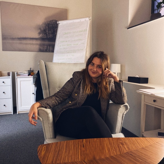 Aktualnie, jest psychologiem i członkiem zespołów specjalistycznych w Przedszkolu Publicznym Nr 4, Przedszkolu Publicznym nr 30 i Przedszkolu Publicznym nr 72. Prywatnie prowadzi również psychoedukacyjny profil na instagramie o nazwie - Oko na dziecko, którego główną tematyką jest zdrowie psychiczne oraz rozwój dzieci i młodzieży. Stale się rozwija w obszarze pracy z dziećmi. W gabinecie chce zagwarantować poczucie bezpieczeństwa, zaufania, empatii i zrozumienia każdej indywidualnej jednostki. Najlepiej odnajduje się w pracy z trudnościami relacyjnymi, emocjonalnymi, adaptacyjnymi i tymi, które są związane z funkcjonowaniem w grupie rówieśniczej, w rodzinie i innych środowiskach dziecka.