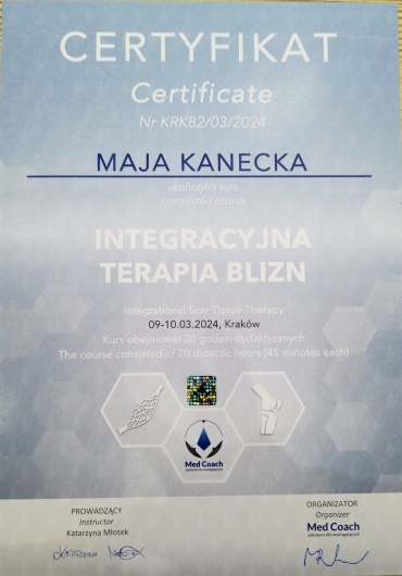 Osoba o ogromnych pokładach pozytywnej energii, która poświęca dużo uwagi potrzebom swoich pacjentów. Pani Maja zdecydowanie kocha to, co robi oraz nie ulega wątpliwości, że nieustannie się w tej dziedzinie dokształca. Jeżeli ktokolwiek jeszcze waha się nad wyborem fizjoterapeuty, to zachęcam i polecam wszystkim Maję Kanecką!