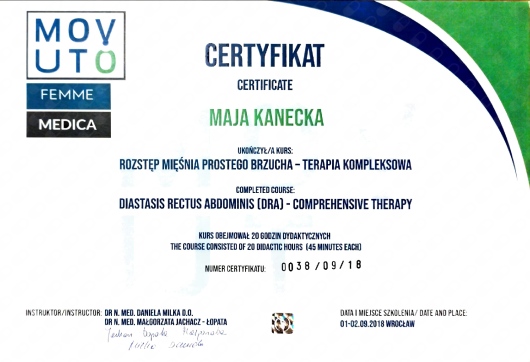 Jaki jest zakres porad oferowanych przez Maja Kanecka?Maja Kanecka to fizjoterapeuta. Na podstawie swojego doświadczenia i wykształcenia Maja Kanecka oferuje usługi takie jak: rehabilitacja urologiczna mężczyzn, fizjoterapia kobiet w ciąży / fizjoterapia okołoporodowa, fizjoterapia uroginekologiczna, Masaż leczniczy, fizjoterapia, masaż całościowy, konsultacja fizjoterapeutyczna, fizjoterapia dna miednicy, Terapia manualna, drenaż limfatyczny 45 minut.